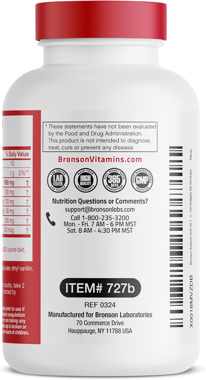 Bronson Antarctic Krill Oil 1000 Mg With Omega-3S Epa, Dha, Astaxanthin And Phospholipids 120 Softgels