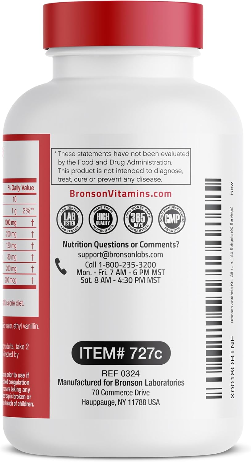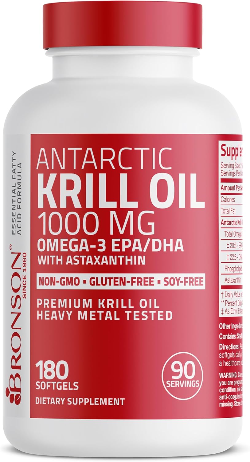 Bronson Antarctic Krill Oil 1000 Mg With Omega-3S Epa, Dha, Astaxanthin And Phospholipids 180 Softgels