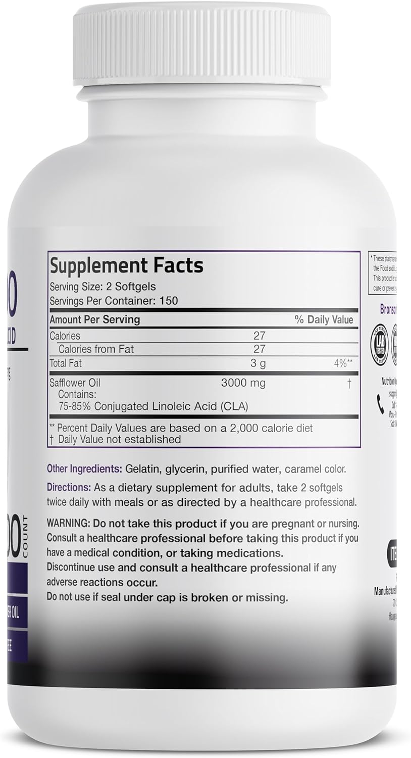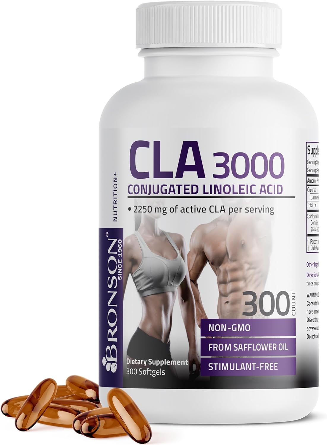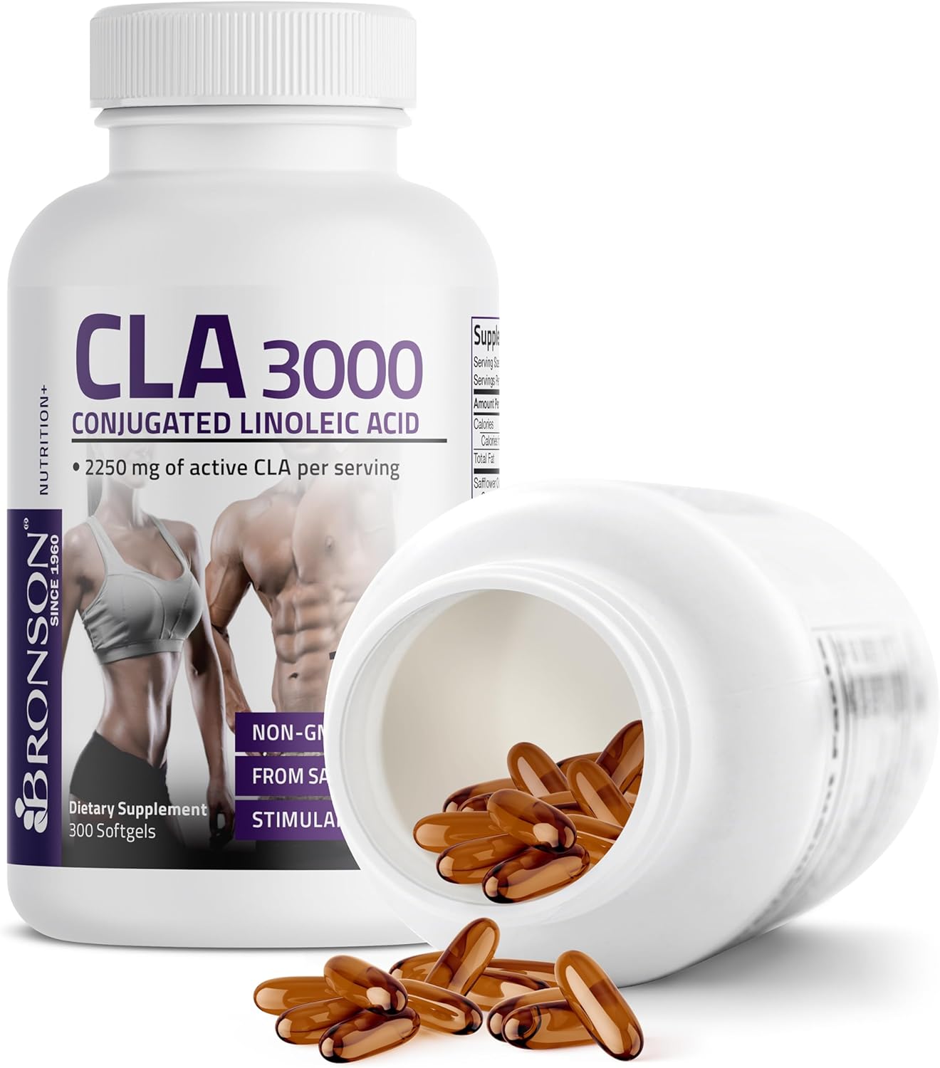 Bronson Cla 3000 Extra High Potency Supports Healthy Weight Management Lean Muscle Mass Non-Stimulating Conjugated Linoleic Acid 300 Softgels