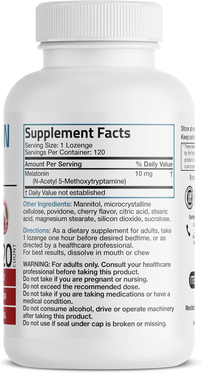 Bronson Melatonin 10Mg Fast Dissolve Cherry Flavored Tablets Vegetarian Chewable Lozenges, 120 Count