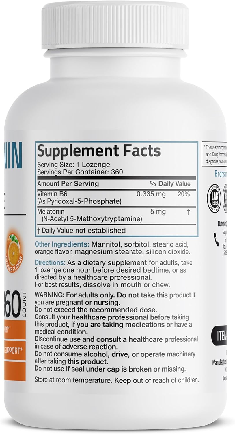 Regulate Sleep Patterns: Bronson’S Melatonin 5 Mg Fast Acting Orange Lozenges Help To Establish Normal Sleep Patterns And Provide You A More Restful/Relaxing Night. A Better Night Of Sleep Can Lead To Improved Performance And Focus