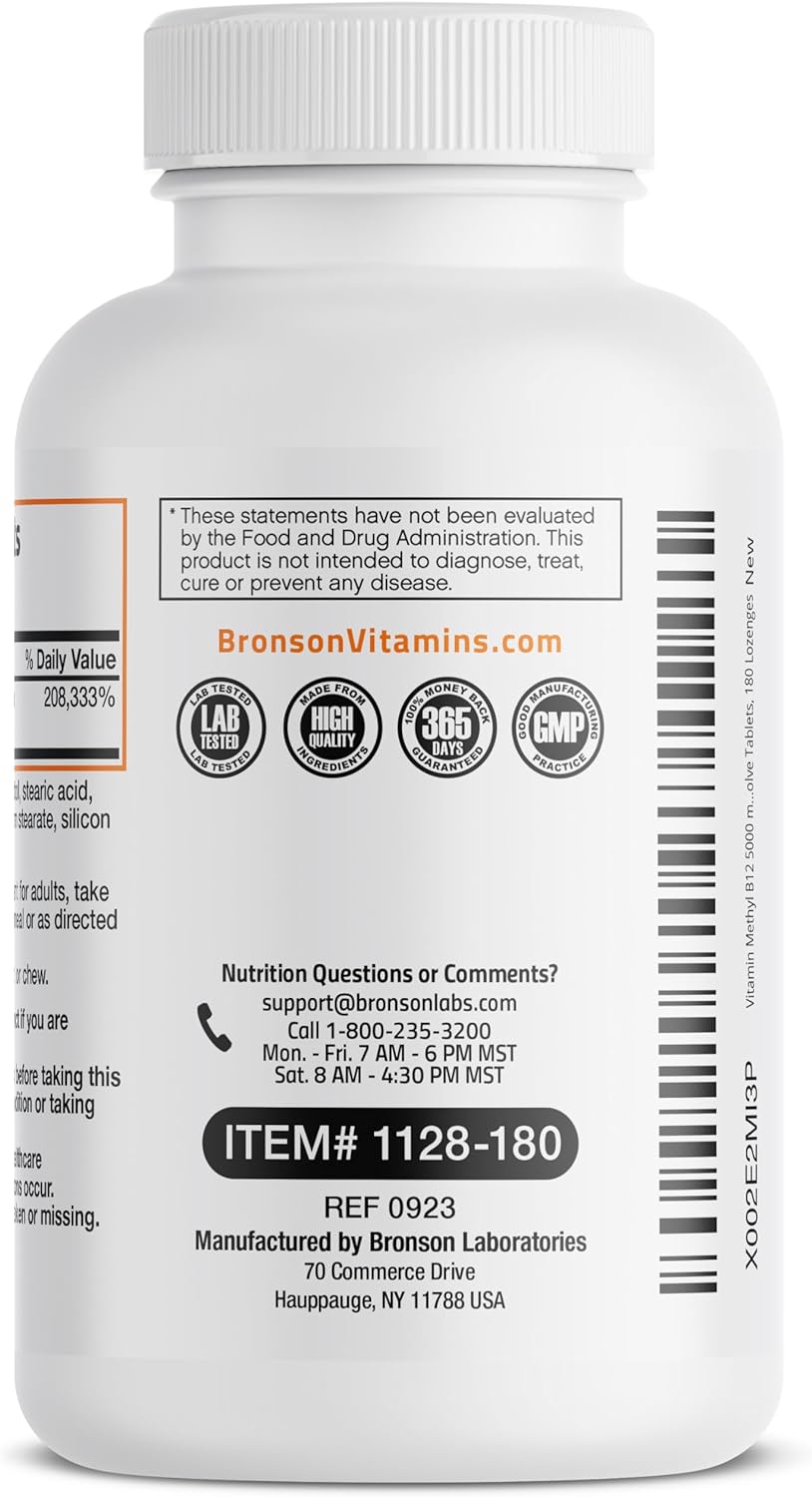 Bronson Methyl B12 5000 Mcg Vitamin B12 Methylcobalamin Energy & Brain