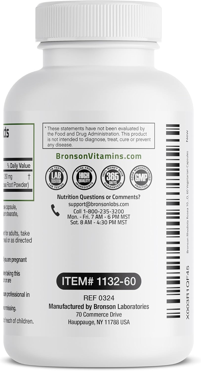 Brain Function & Energy: Bronson Rhodiola Rosea helps to support healthy brain function, energy and stamina.* Bronson’s Rhodiola Rosea helps promote overall wellness and vitality in active adults