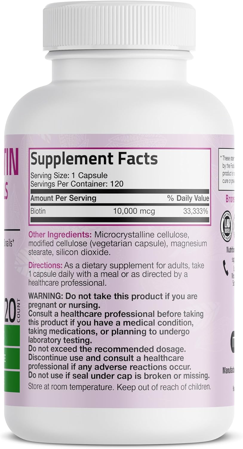 Bronson Ultra Biotin 10,000 Mcg Hair Skin And Nails Supplement, Non-Gmo, 120 Vegetarian Capsules