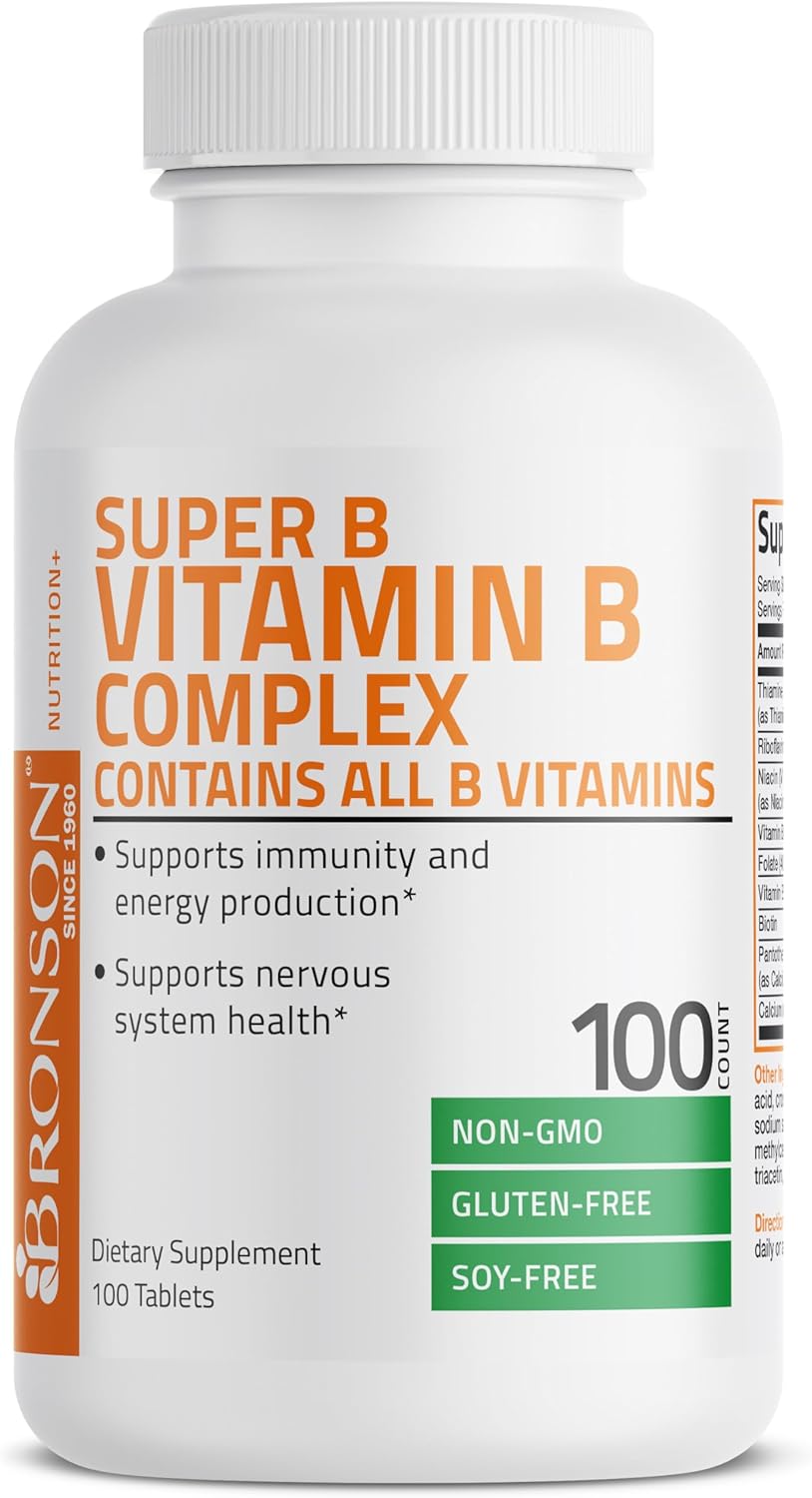 Bronson Vitamin B Complex (Vitamin B1, B2, B3, B6, B9 - Folic Acid, B12), 100 Tablets