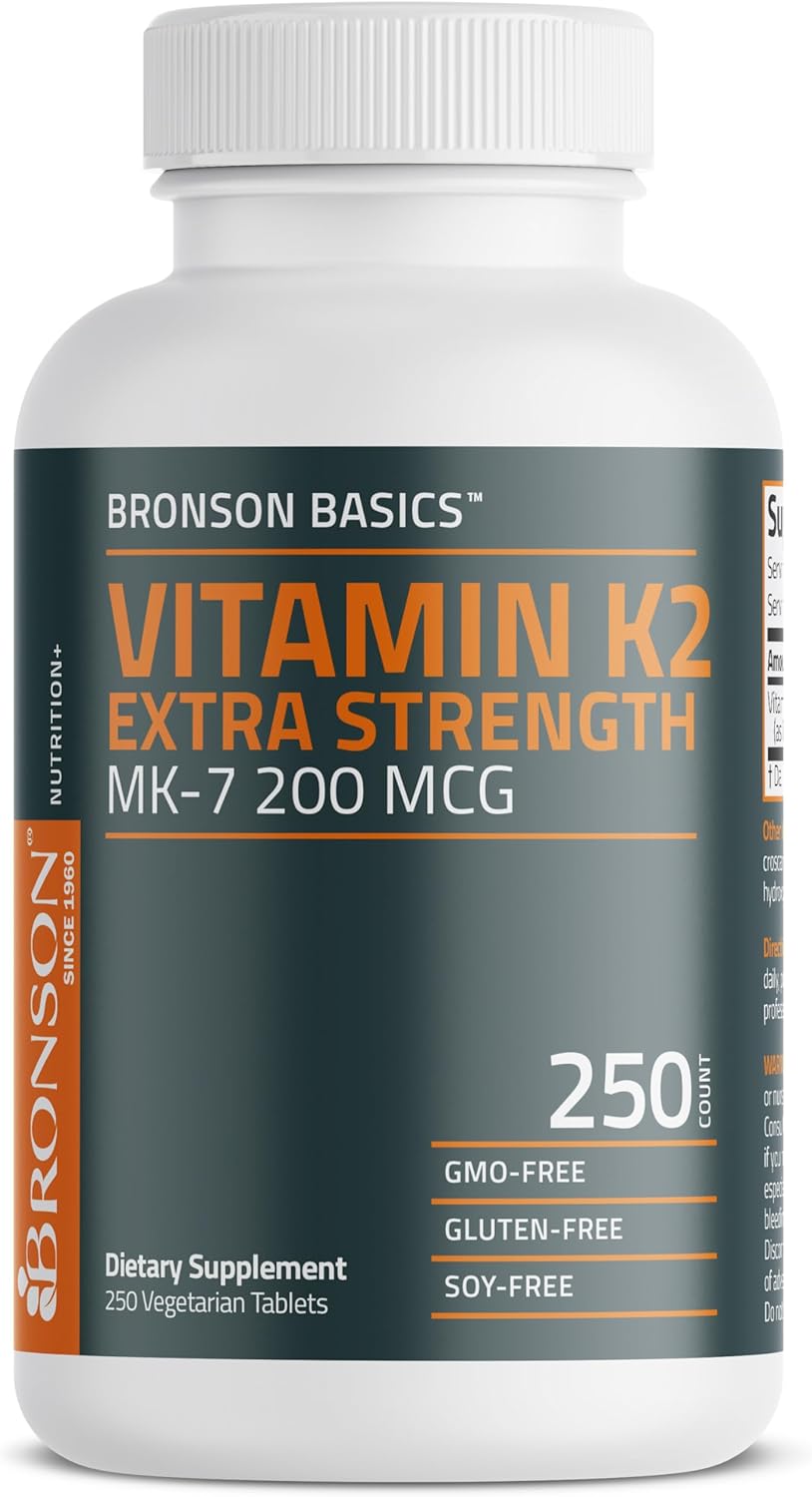 Bioavailable K2 Mk-7: Bronson Basics Vitamin K2 Extra Strength Mk-7 200 Mcg Provides The Superior Bioavailable Form Of Vitamin K To Support Strong Bones.* While Vitamin K1 Offers Similar Benefits, Vitamin K2 Has Been Shown To Remain More Biologically Active In The Body For Longer Periods Of Time And Helps To Navigate Calcium Transportation To The Bones