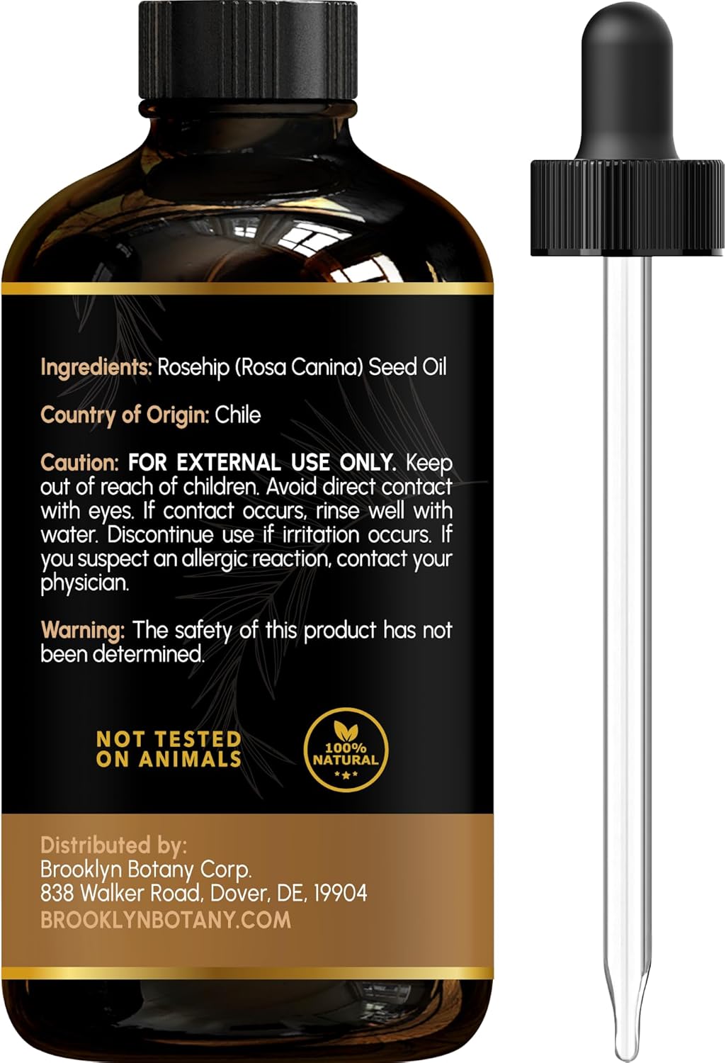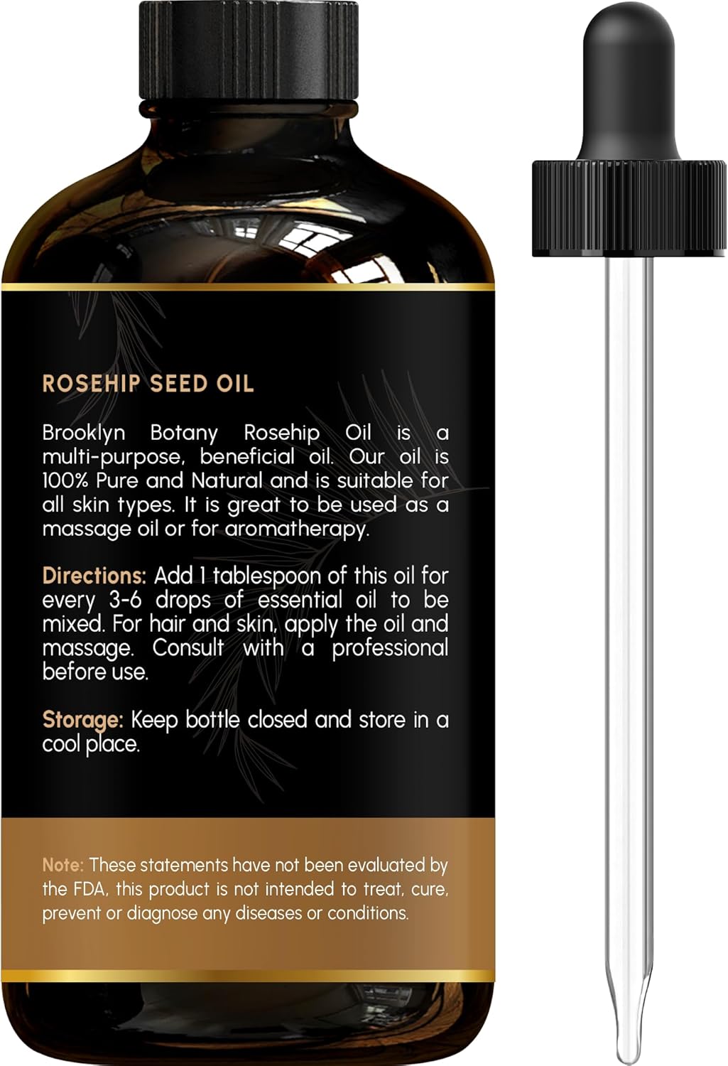 Brooklyn Botany Rosehip Oil For Face, Skin And Hair - 100% Pure And Natural - Carrier Oil For Essential Oils, Aromatherapy, Massage And Body - 4 Fl Oz