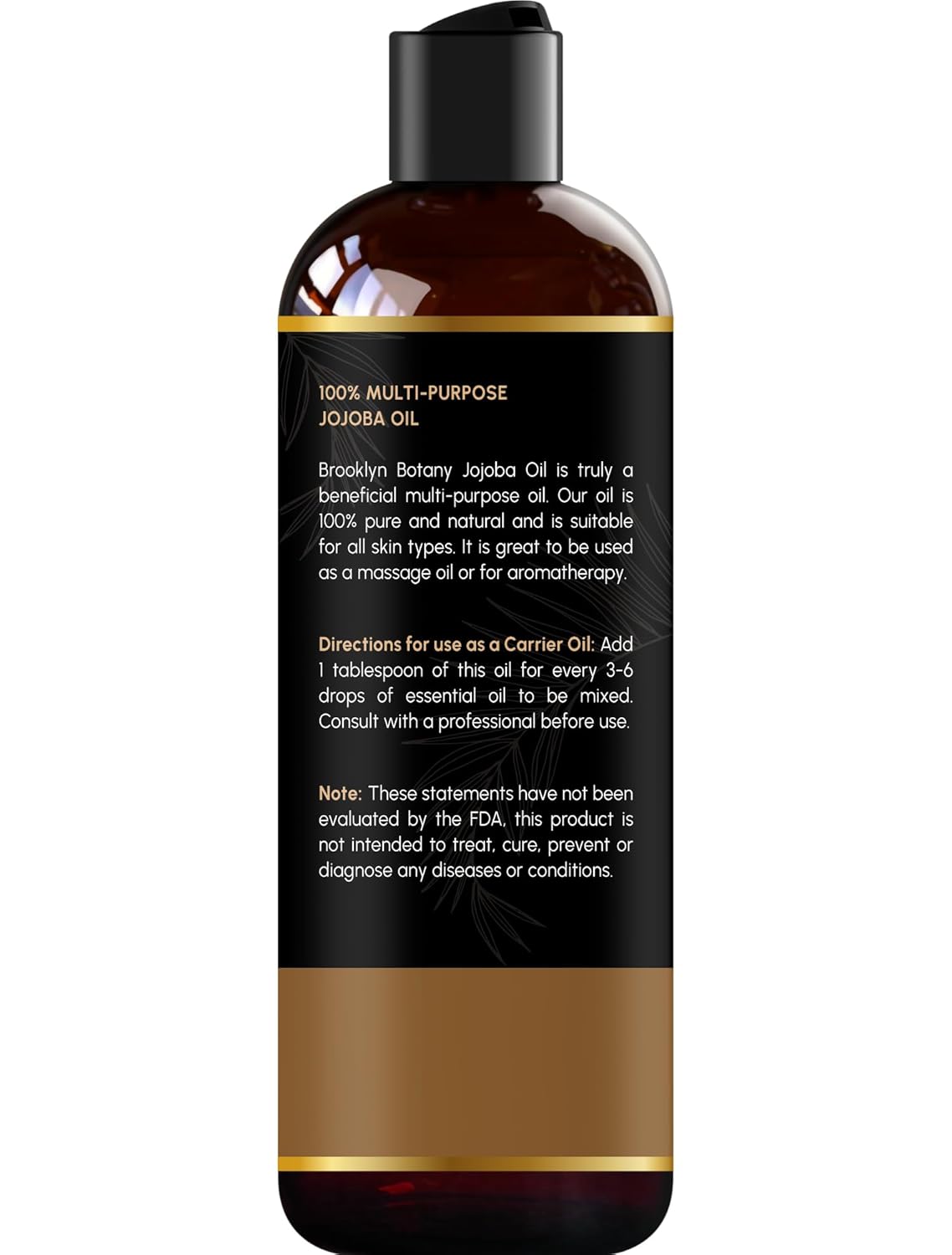 Brooklyn Botany Usda Organic Cold-Pressed Jojoba Oil For Skin, Hair And Face - 100% Pure And Natural Body Oil And Hair Oil - Carrier Oil For Essential Oils, Aromatherapy And Massage Oil - 8 Fl Oz