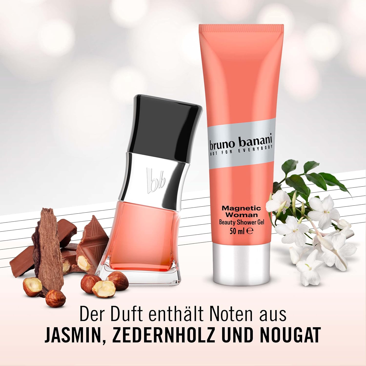 About this item Bruno Banani Magnetic Woman Gift Set for Her Eau de Toilette 30 ml and Shower Gel 50 ml Oriental floral: sparkling fruity top and floral sweet heart notes meet a warm, spicy base. Only the fruity temptation: sparkling citrus fruits, sweet pear and blackcurrant โ beautiful for snacking! Then the cosy warmth: the sweetness of Gianduja and cocoa spreads on a bed of spicy cedar wood and soft cashmeran. โบ See more product details,Bruno Banani Magnetic Woman Gift Set for Her Eau de Toilette 30 ml and Shower Gel 50 ml,Oriental floral: sparkling fruity top and floral sweet heart notes meet a warm, spicy base,Only the fruity temptation: sparkling citrus fruits, sweet pear and blackcurrant โ beautiful for snacking!,Then the cosy warmth: the sweetness of Gianduja and cocoa spreads on a bed of spicy cedar wood and soft cashmeran