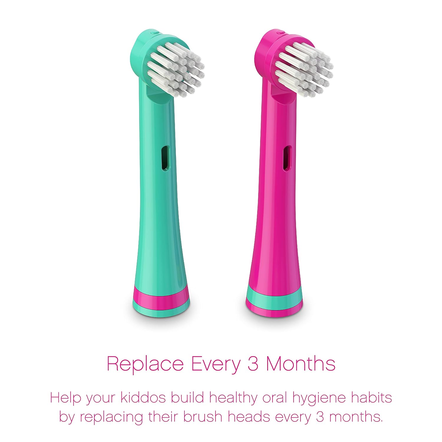 EASY TO SWITCH: Quick twist-and-click installationDESIGNED TO CLEAN: Compact design is perfect for reaching hard-to-clean areas of the mouthSAFE AND EFFECTIVE: Quality tested and CPSIA approved for safe, effective cleaningLONG-LASTING: Durable bristles last up to 3 months before each individual brush head needs to be replacedCOMPATIBILITY: Compatible with Brusheez Electronic Toothbrush Set for Prancy the Pony (sold separately)Keep your child's Brusheez electronic toothbrush working optimally with these replacement brush heads designed in colors that coordinate with your existing toothbrush set. Dentists recommend that you install a new brush head at least every 3 months or sooner if any of the following situations occur: Your brush head is tattered and worn. Your child has been sick. Your child has used the toothbrush to clean something other than his or her teeth