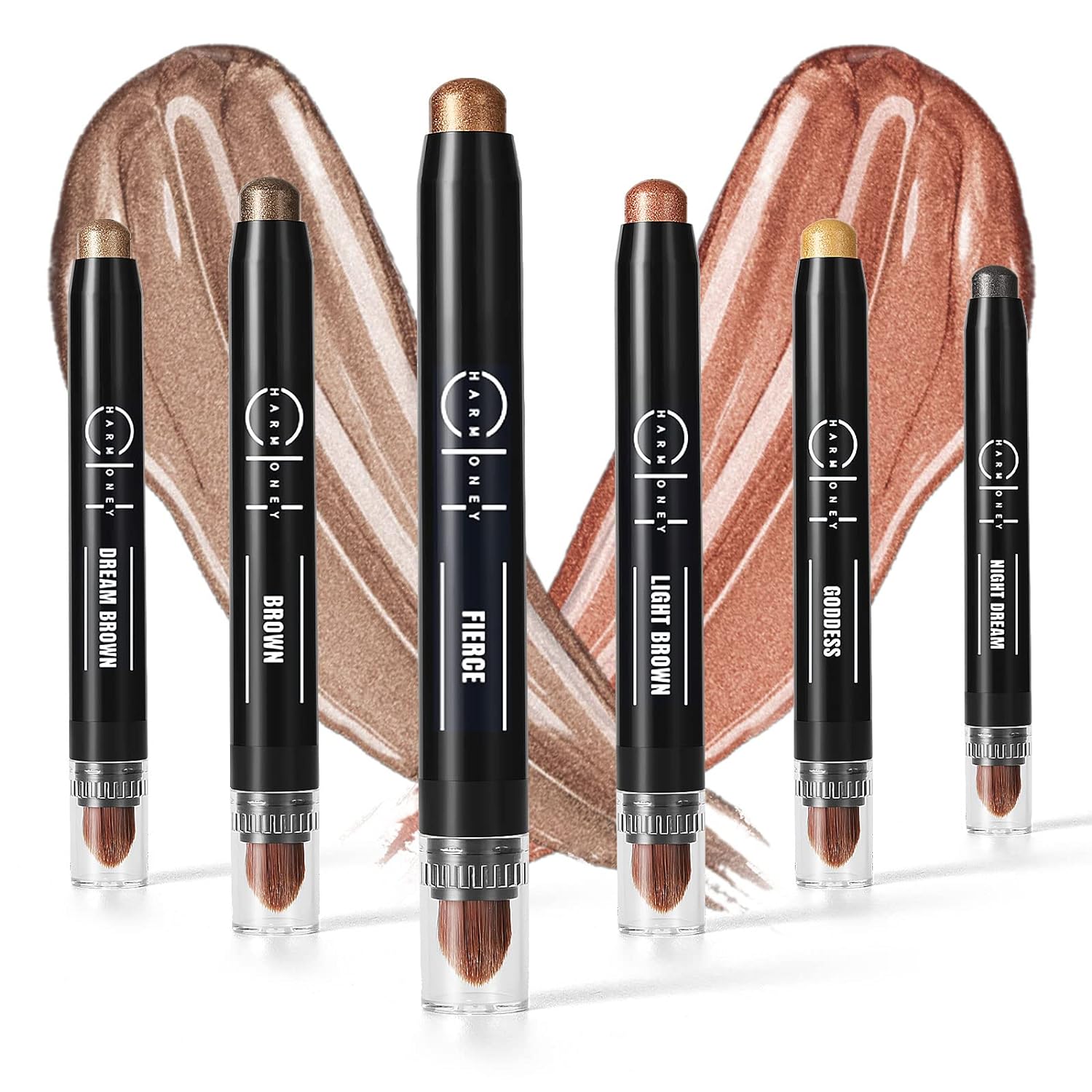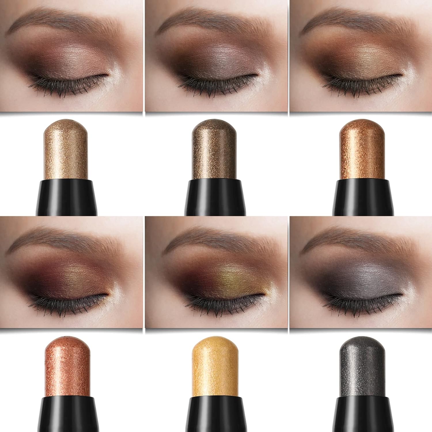 BTremary 6PCS Matte Metallic Eyeshadow Stick, Light to Dark Brown Cream Shimmer Eyeshadow Pencil, Waterproof Eyeshadow Sticks Set, Long Lasting Moisturizing, Crease Resistant, No Fall Out