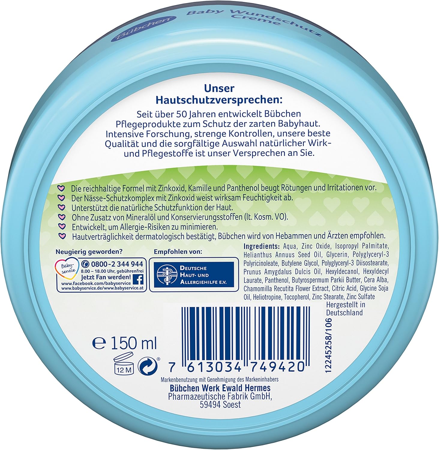 Bübchen Baby Wound Protection Cream, Sensitive Wound Healing Ointment, Wound And Healing Ointment For Delicate Baby Skin, With Zinc Oxide, Chamomile And Panthenol, Quantity: 1 X 150 Ml