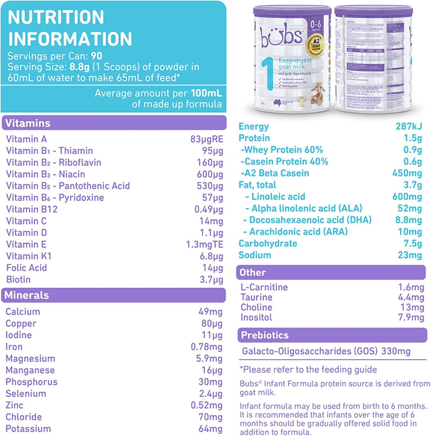 Bubs Goat Milk Stage 1 Infant Formula Is Exclusively Formulated Our Goat Milk Stage 1 Formula, Which Uses Natural Goat Milk, Includes Omega 3 (Dha), Omega 6 (Ara), And Prebiotics (Gos). Goat Milk Naturally Supports Gentle Digestion And May Be A Good Alternative For Formula Fed Babies With Sensitive Tummies