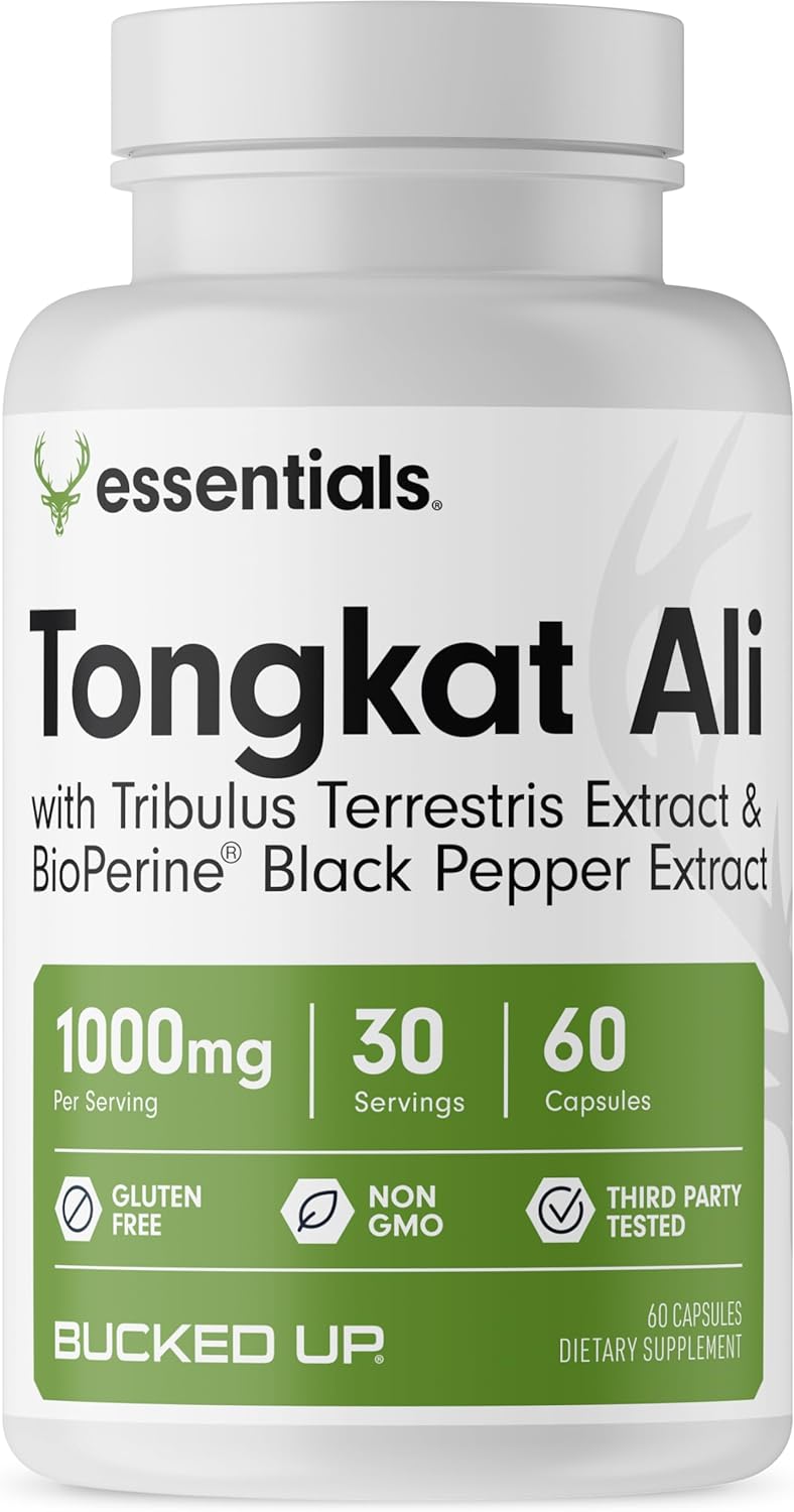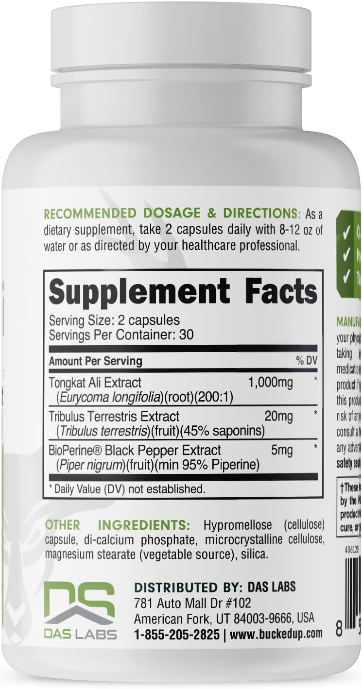 Bucked Up Tongkat Ali - 1000Mg Per Serving, Tribulus Terrestris Extract & Bioperine Black Pepper Extract Essentials (30 Servings, 60 Capsules)