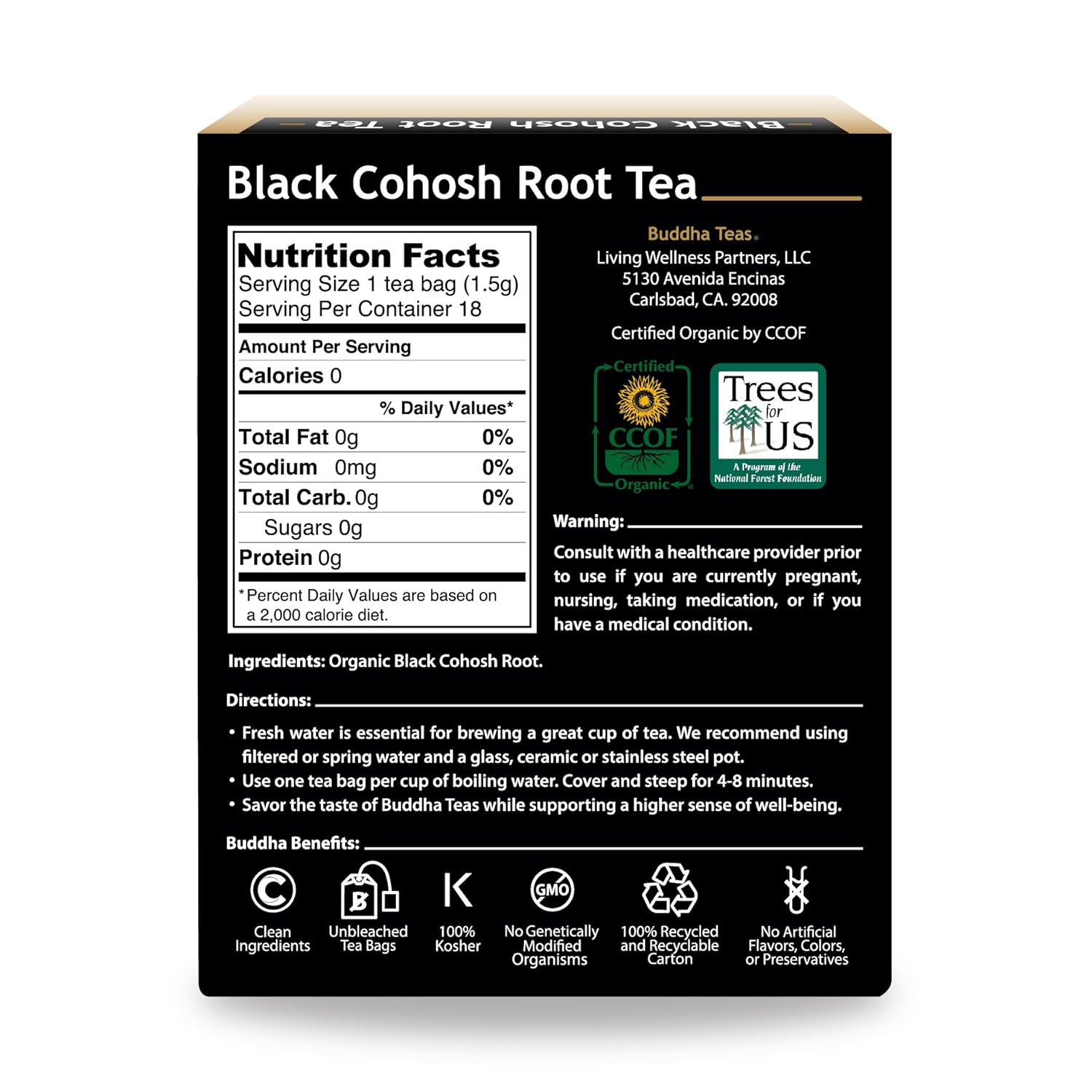 Buddha Teas Organic Black Cohosh Root Tea - Ou Kosher, Usda Organic, Ccof Organic, 18 Bleach-Free Tea Bags