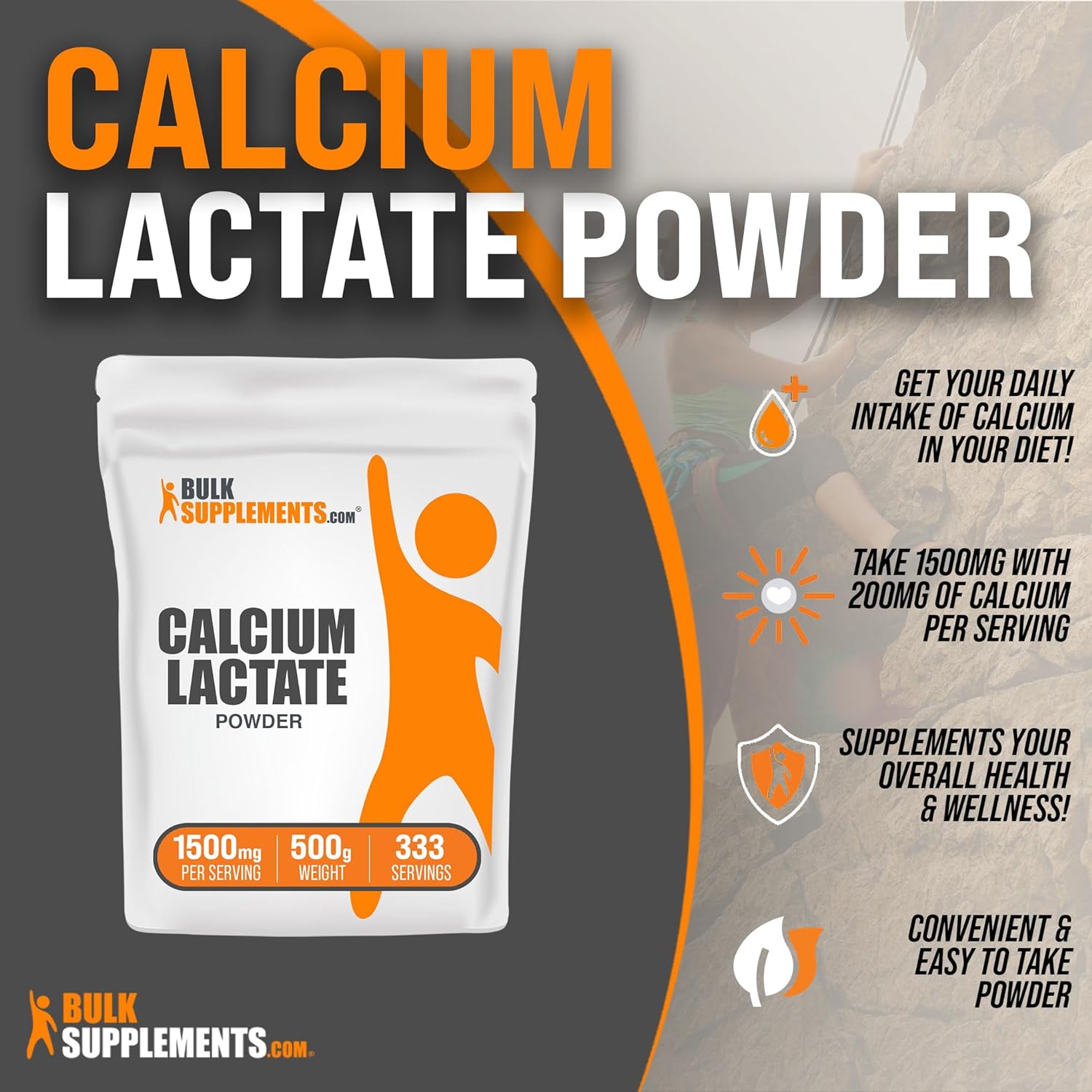 DESCRIPTION : BulkSupplements.com Calcium Lactate Powder - Calcium Supplement, Calcium Lactate Food Grade - Calcium Lactate Supplement, 1500mg per Serving (195mg Calcium), 500g (1.1 lbs)
