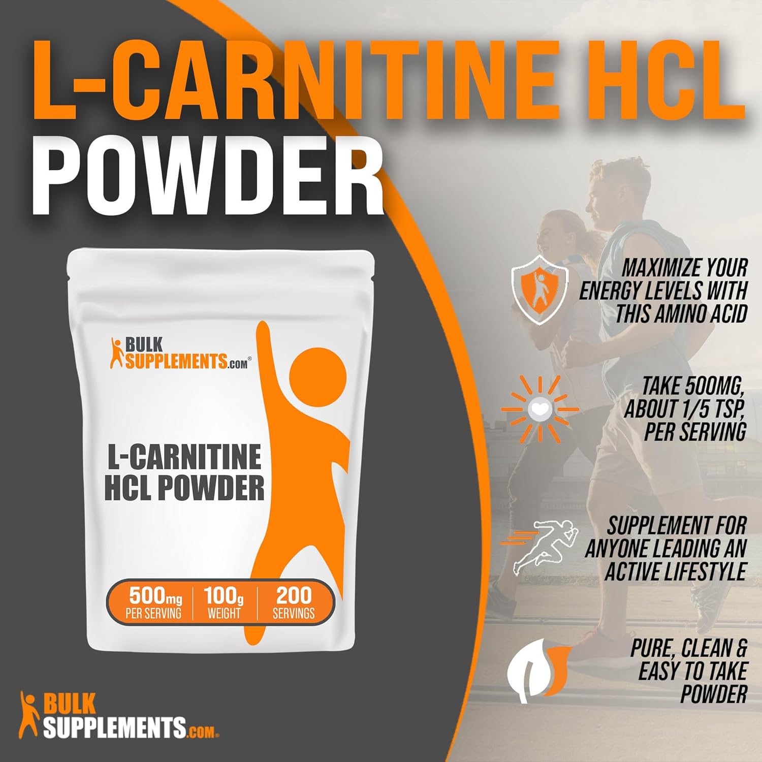 BULLET POINTS : 1 > ?? Boost your Energy Levels: Get the energy boost you need with our L-Carnitine HCl supplement! L-Carnitine HCl powder is one form of carnitine supplement that can be beneficial for healthy & active lifestyle.* Plus, our L-Carnitine HCl powder, a L-Carnitine powder, helps you keep sustained energy so you can power through long days and vigorous activities!
