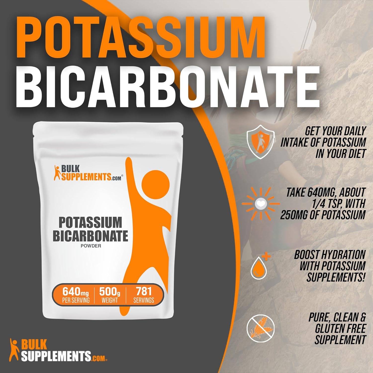 BULLET POINTS : 1 > ?? Get the Potassium You Need: Potassium is an important mineral that our bodies need for a variety of reasons. And, our potassium bicarbonate powder, or potassium powder and potassium supplement. Plus our Potassium Bicarbonate, with 250mg of potassium, in your diet today!