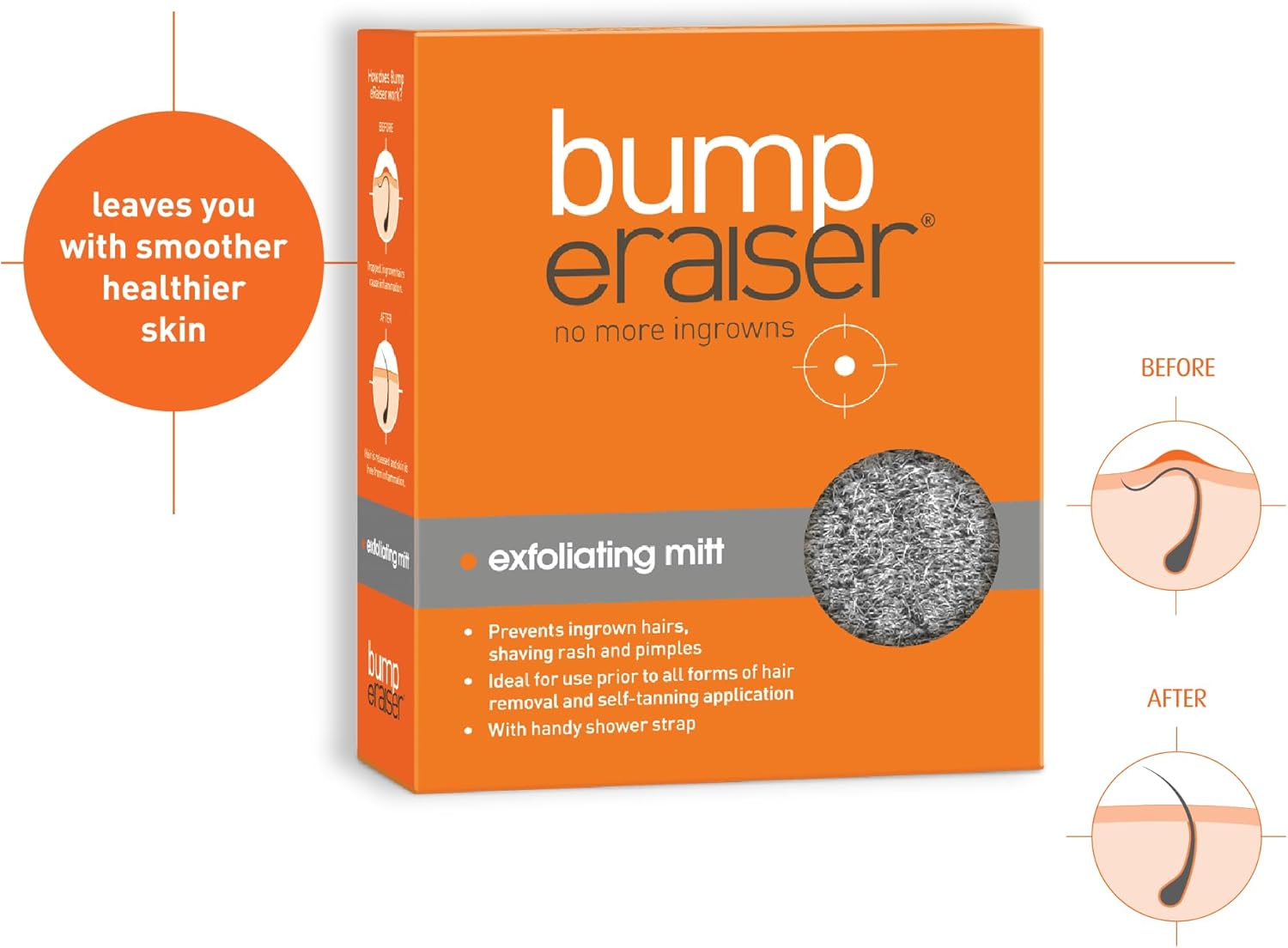 Bump Eraiser Exfoliating Mitt For Use After Hair Removal To Reduce The Chances Of Ingrown Hairs Or Before Tanning