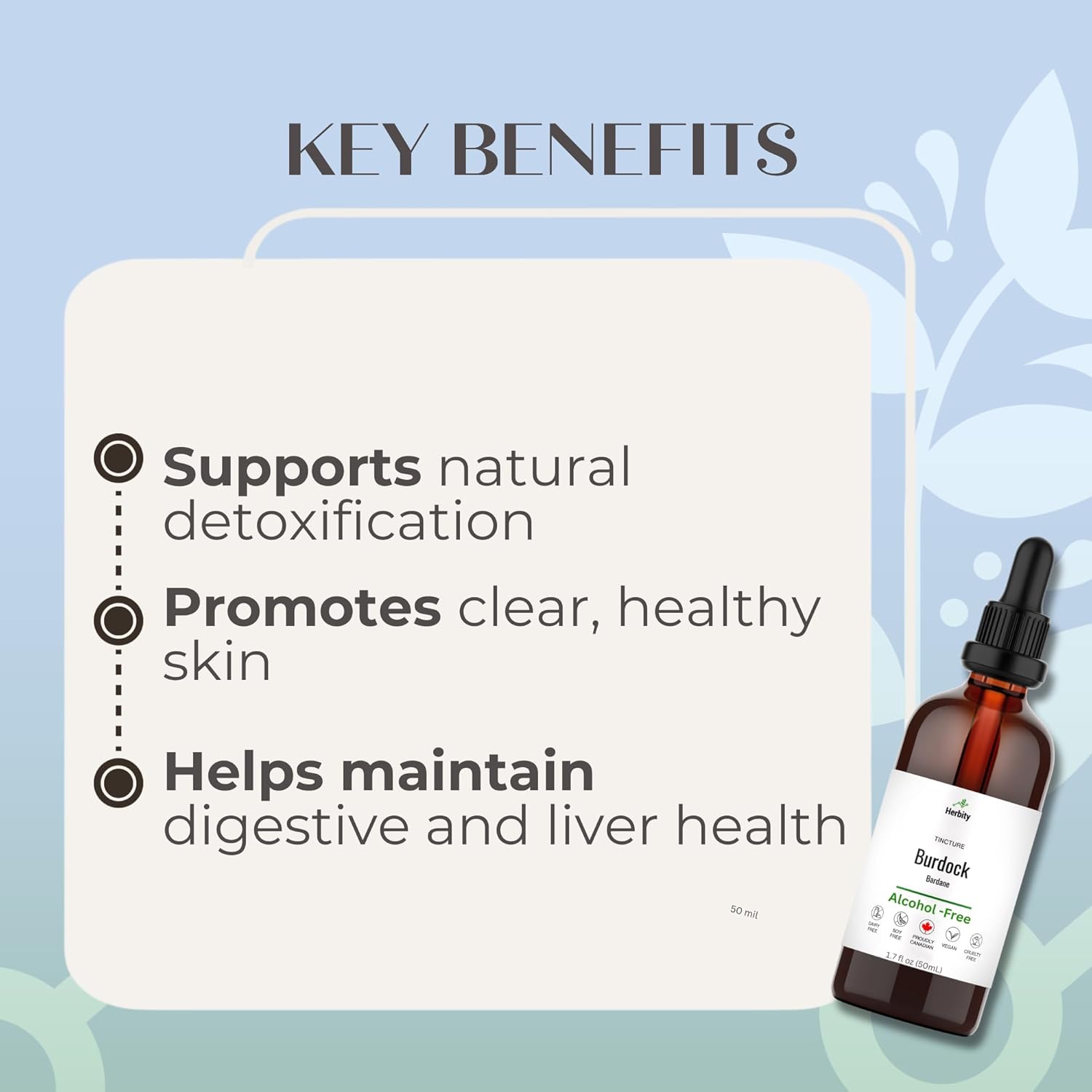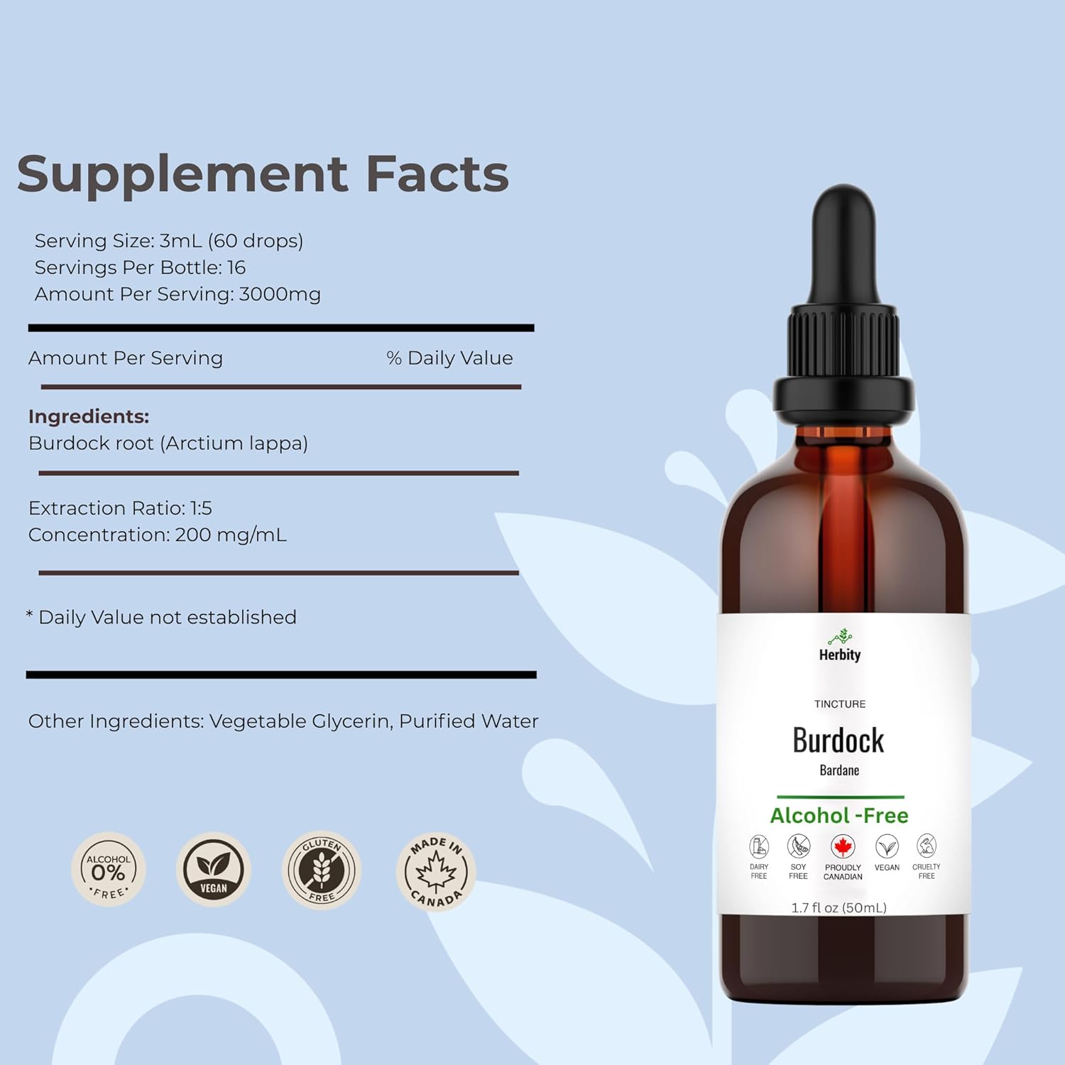 Burdock Root Tincture – Alcohol-Free Herbal Extract For Detox, Digestion & Antioxidant Support – Vegan, No Added Suga Supplement – 1.7 Fl Oz (50 Ml)