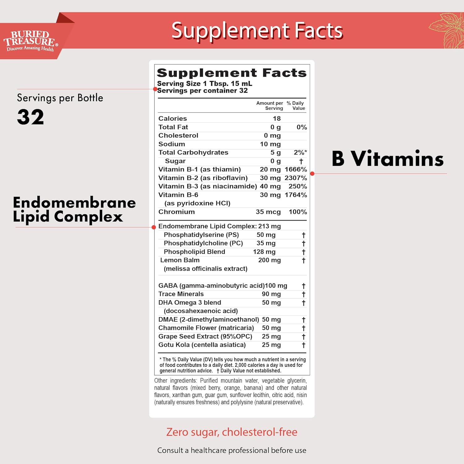 Buried Treasure - Added Attention - Children'S Learning Support With Gaba Dha Vitamin B And Herbal Blend - Aid Healthy Brain Functions - Improved Short-Term Auditory Memory Focus & Behavior 16.54 Oz