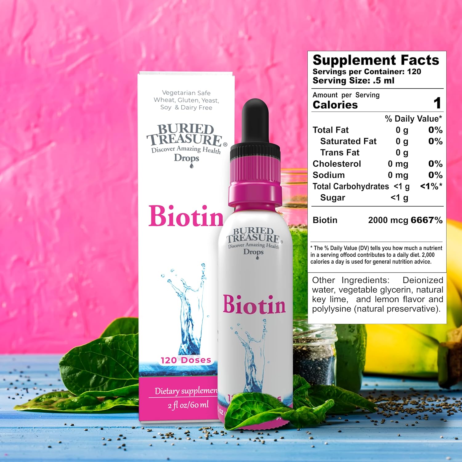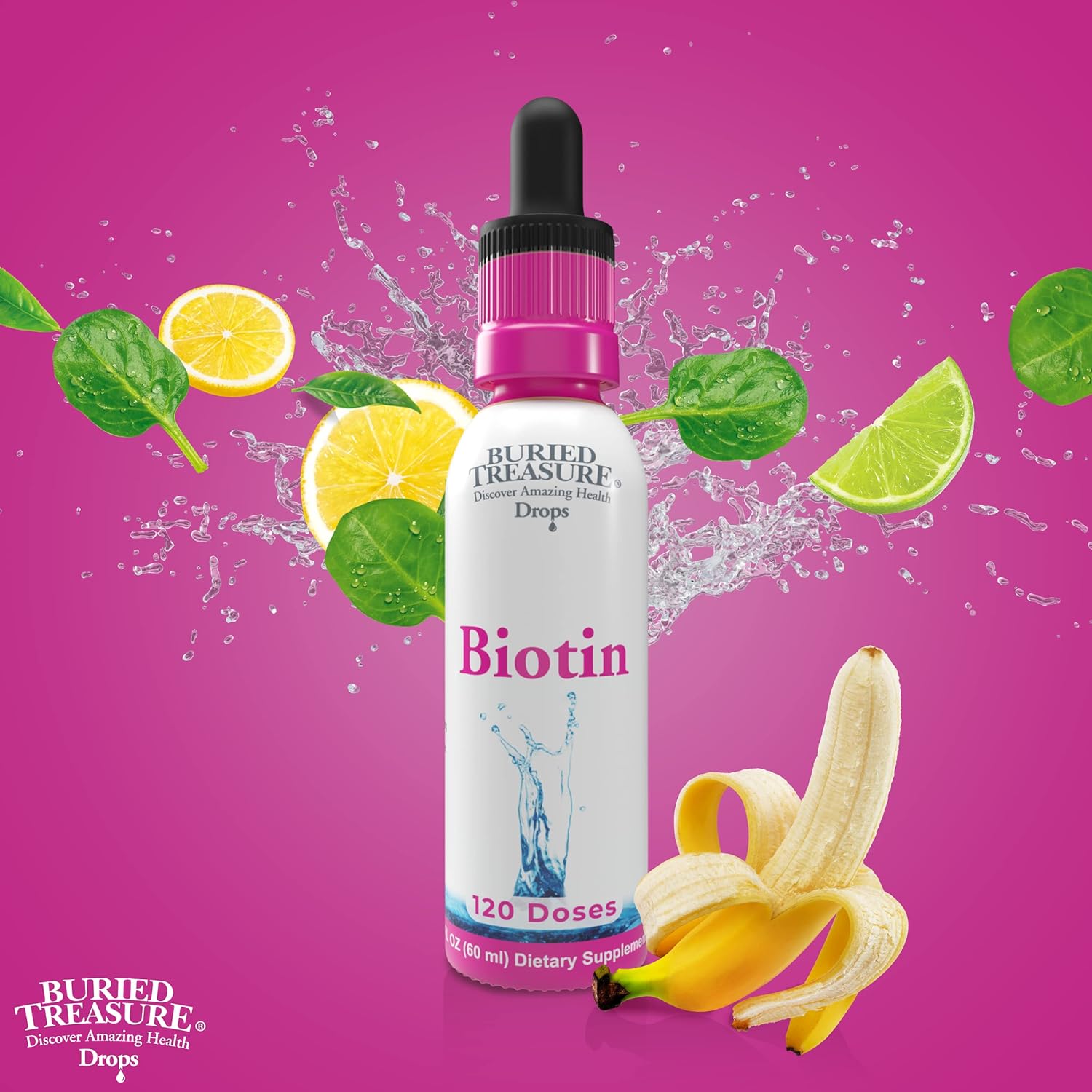 DESCRIPTION : Buried Treasure Biotin Drops - 120 Servings, 2 oz, Supports Hair, Skin & Nails