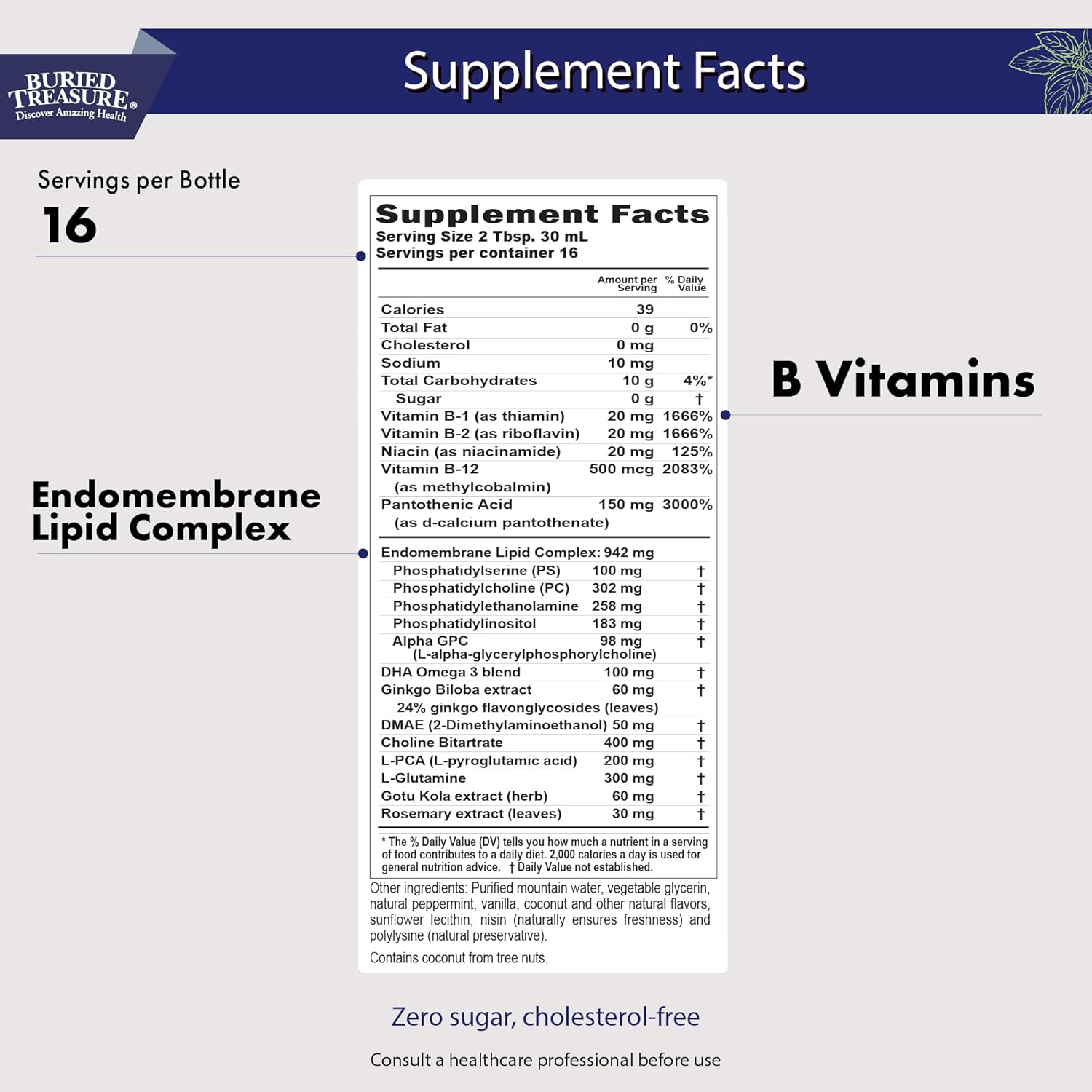 High potency liquid blend of vitamins, minerals and herbs with Ginkgo Biloba, DMAE, Gotu Kola and B Vitamins
