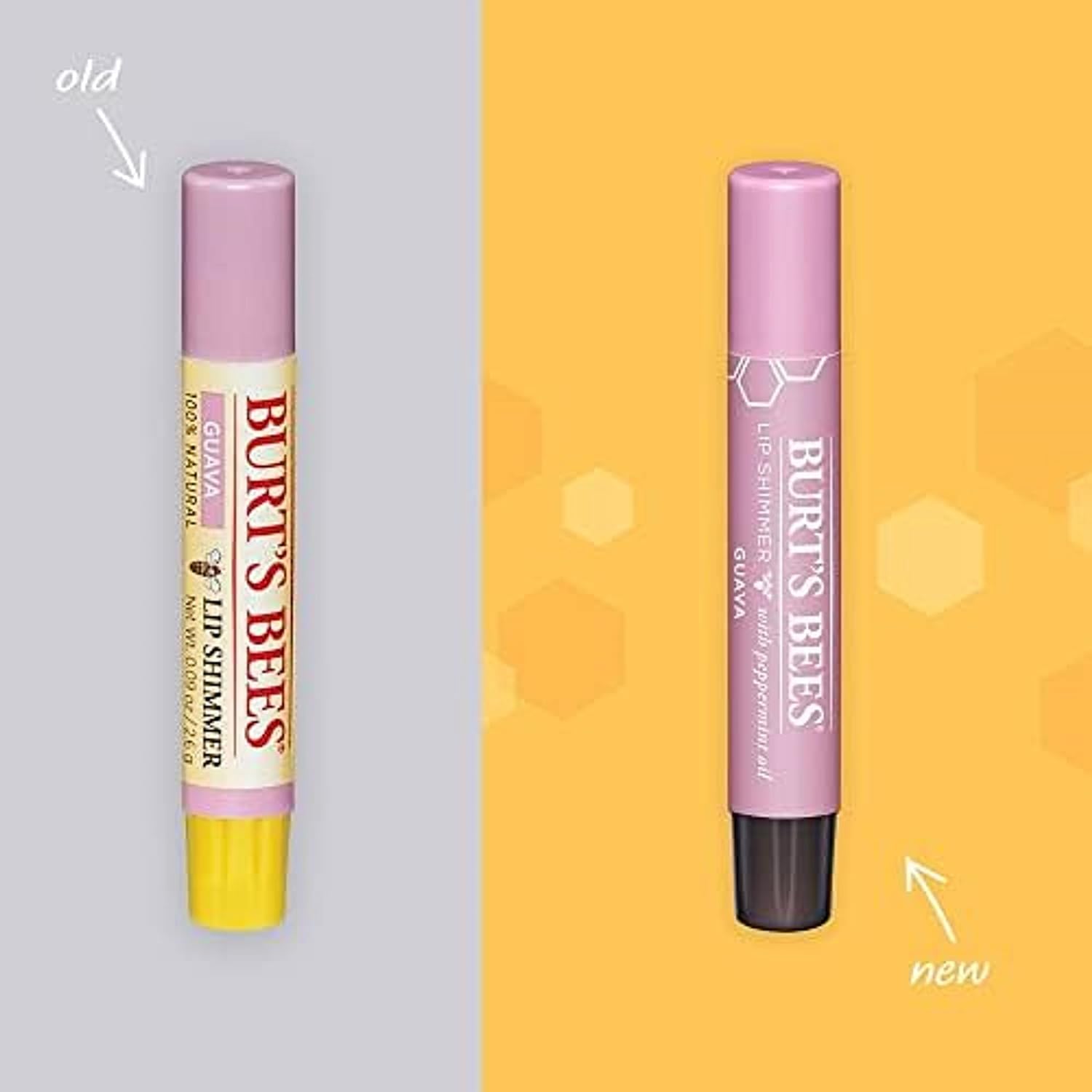 Burts Bees Lip Shimmer keeps your lips hydrated with slightly more than a hint of color. The lip shimmer comes in one slim tube and is available in 14 shimmering shades. The Guava shade has a lilac hue with just the right amount of natural looking color and shimmer. The lip shimmers glide on with the perfect compliment of moisture and touch of color. Enriched with shea butter, beeswax and antioxidant rich fruit oils to moisturize, nourish and soften lips naturally. The 100% natural moisturizing lip tint has a smooth texture that looks great alone or to layer with your favorite lipstick. The lip glosses are free of parabens, phthalates, petrolatum and SLS. This natural beauty product has 14 available shades from pink, plum, to peach, cocoa and mauve to flatter and nourish your lips naturally day or night. With the slim size tube, you can conveniently carry multiple colors in your purse. Burts Bees color and luminous shimmer helps lips look healthy and naturalLIP SHIMMER: Nourish your lips with a touch of luminescent color with Burt's Bees Guava Lip Shimmer for a natural, everyday look; Package may varyLONG-LASTING MOISTURE: Hydrate and soothe your lips with moisturizing sunflower oil, Vitamin E and the refreshing tingle of peppermint oilCONDITIONING LIP BALM: Just one swipe of this conditioning lip color with antioxidant-rich fruit oils leaves your lips soft and moisturizedALL-NATURAL MAKEUP: Enriched with a 100% natural origin formula, this Burt's Bees Lip Shimmer is the perfect hint of lip color you've been looking for