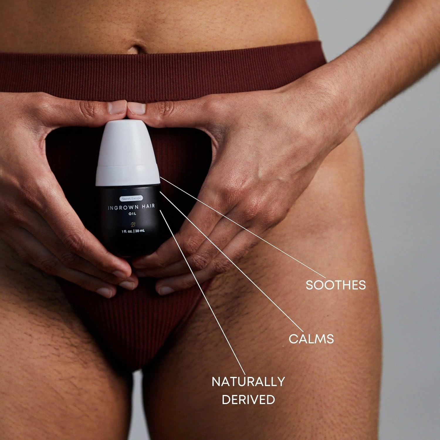 About this item Whatâs Included: This skincare bundle includes one full-sized Sweet Escape Ingrown Hair Oil (30 ml) and one full-sized Sweet Escape Exfoliating Scrub (236 ml). Sweet Escape has a signature soft aroma of tangerine and vanilla to leave you soft, smooth and smelling fresh. How Sweet Escape Oil Works: 6 natural ingredients work together to nourish and hydrate the skin while reducing the appearance of ingrown hairs at the same time. The combination of jojoba, grapeseed and tea tree helps with dryness and soothe skin, it is also effective in reducing rough, bumpy skin and redness after hair removal How Sweet Escape Scrub Works: An exfoliating body scrub formulated with sugar and a hydrating blend of mixed oils like jojoba seed, tea tree and grapeseed; that leaves skin hydrated, and soft while reducing the appearance of ingrown hair and razor bumps via exfoliation. 2-Step Routine: Step 1 is to exfoliate your skin using the Sweet Escape Scrub. The exfoliation smooths skin, gives a radiant glow, and increases your skinâs ability to absorb moisturizers. Step 2 is to soothe and moisturize the skin using our Sweet Escape Oil. Your Ethical Skincare Must-Have: No need to worry about any harmful chemicals or toxins entering your body. Our entire skincare line features 100% vegan, cruelty-free, and made for all skin types. âș See more product details,Whatâs Included: This skincare bundle includes one full-sized Sweet Escape Ingrown Hair Oil (30 ml) and one full-sized Sweet Escape Exfoliating Scrub (236 ml). Sweet Escape has a signature soft aroma of tangerine and vanilla to leave you soft, smooth and smelling fresh,How Sweet Escape Oil Works: 6 natural ingredients work together to nourish and hydrate the skin while reducing the appearance of ingrown hairs at the same time. The combination of jojoba, grapeseed and tea tree helps with dryness and soothe skin, it is also effective in reducing rough, bumpy skin and redness after hair removal,How Sweet Escape Scrub Works: An exfoliating body scrub formulated with sugar and a hydrating blend of mixed oils like jojoba seed, tea tree and grapeseed; that leaves skin hydrated, and soft while reducing the appearance of ingrown hair and razor bumps via exfoliation,2-Step Routine: Step 1 is to exfoliate your skin using the Sweet Escape Scrub. The exfoliation smooths skin, gives a radiant glow, and increases your skinâs ability to absorb moisturizers. Step 2 is to soothe and moisturize the skin using our Sweet Escape Oil,Your Ethical Skincare Must-Have: No need to worry about any harmful chemicals or toxins entering your body. Our entire skincare line features 100% vegan, cruelty-free, and made for all skin types