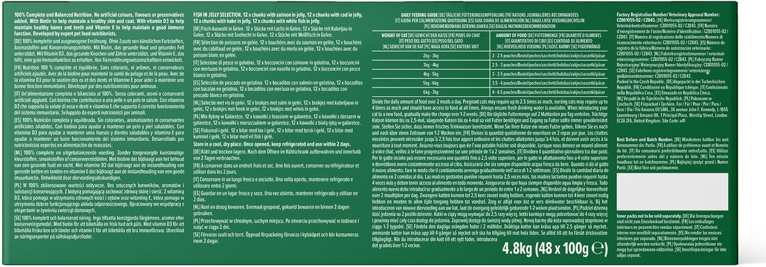 By Amazon Complete Food For Adult Cats, Fish Selection In Jelly, 4.8 Kg (48 Packs Of 100G)Cz801055-02/ Cz843