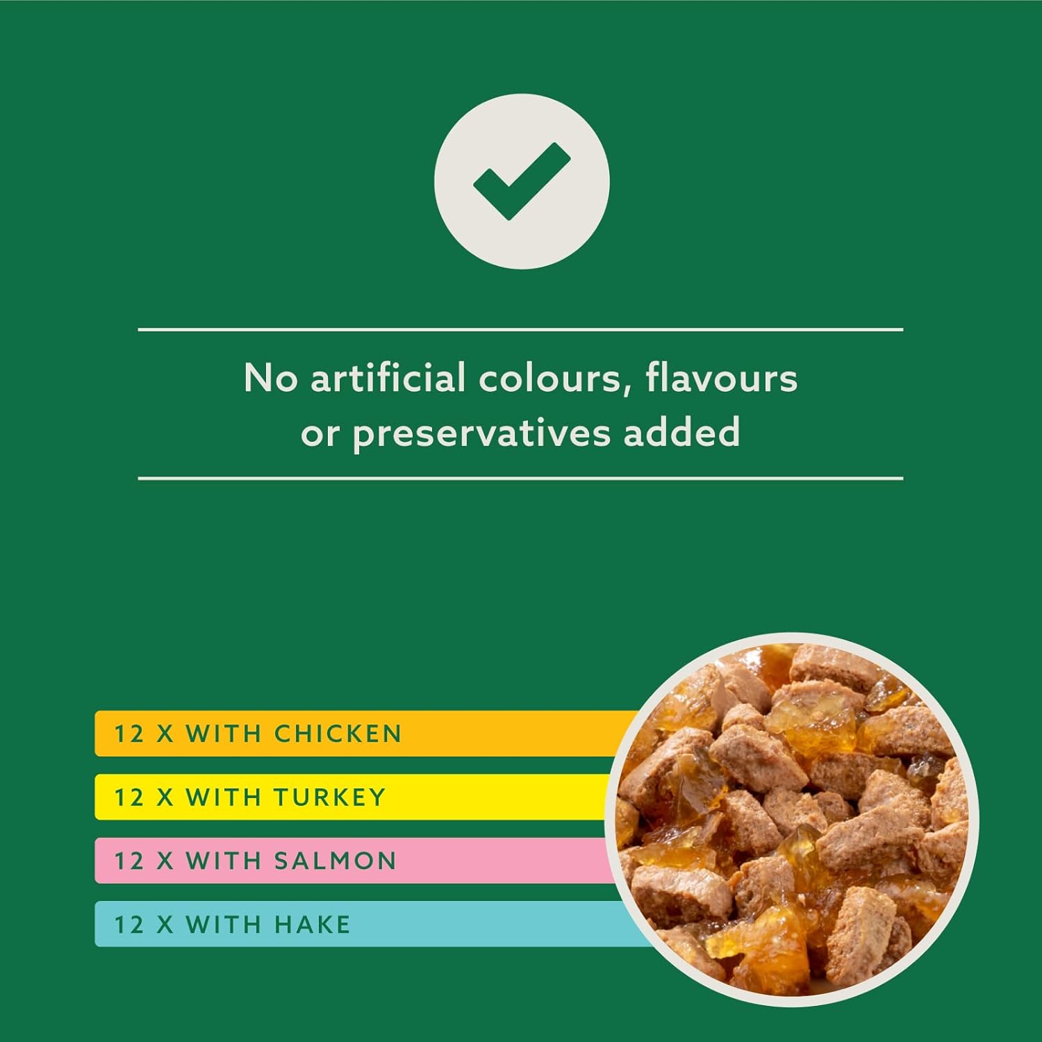 4 TASTY RECIPES: 48 pouches; 12 x chicken in jelly, 12 x turkey in jelly, 12 x salmon in jelly, 12 x hake in jelly