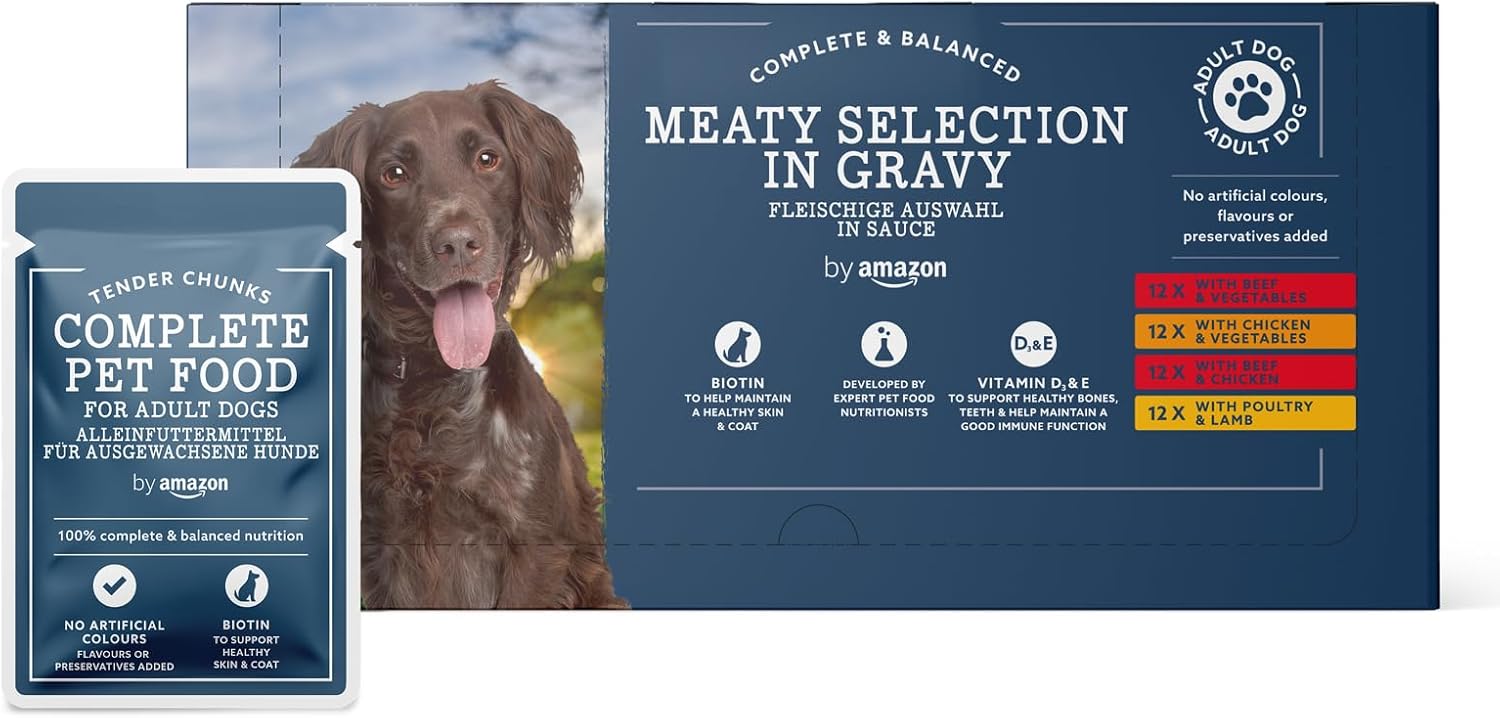 By Amazon Complete Food For Adult Dogs, Meat Selection In Gravy, 4.8 Kg (48 Packs Of 100G)Cz801055-02/ Cz843