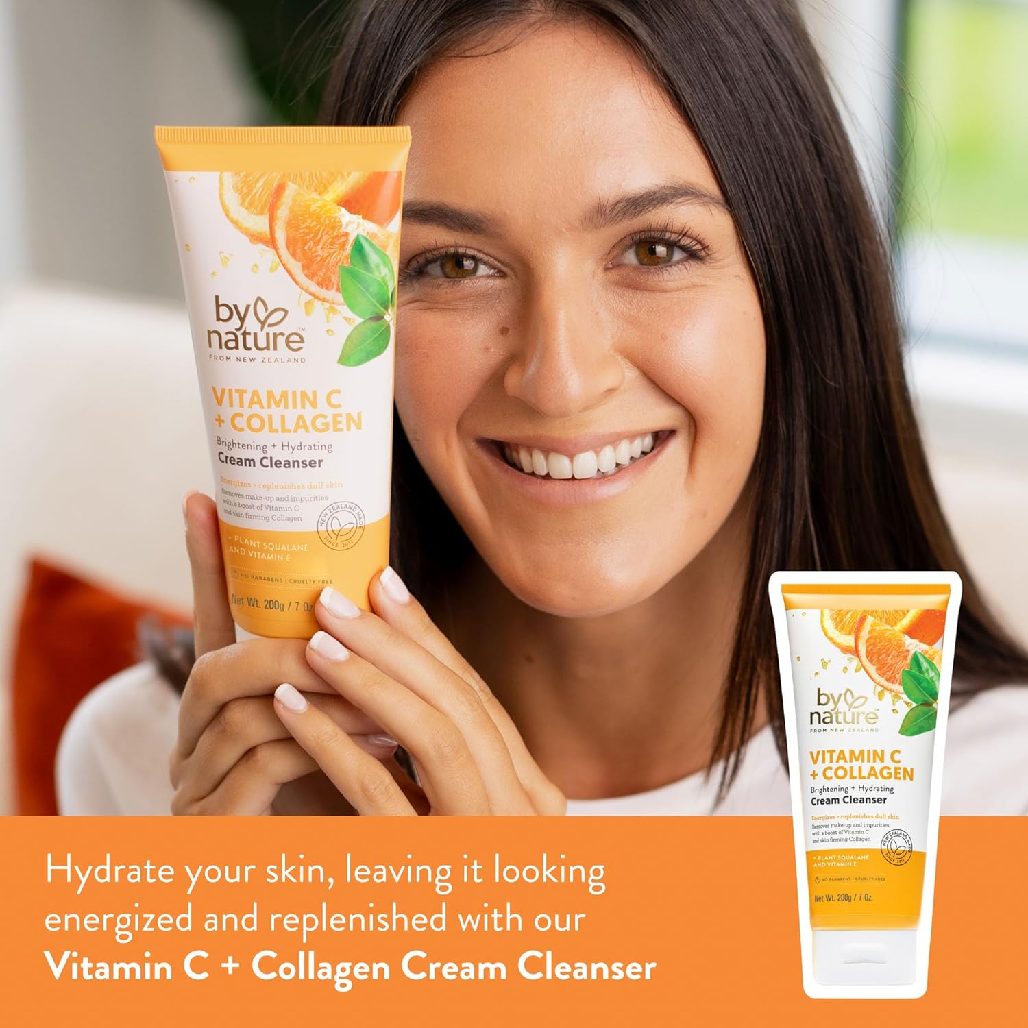 By Nature Vitamin C + Collagen Face Cream Cleanser - Daily Makeup Remover And Facial Wash From New Zealand (7 Oz)