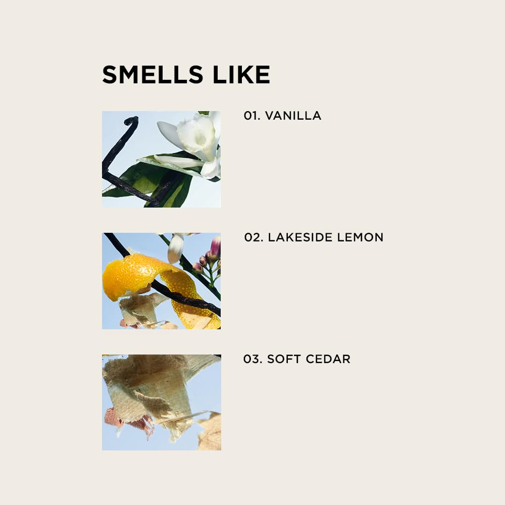 Layered Scent Profile - Top notes of vanilla, middle notes of lakeside lemon and base notes of soft cedar