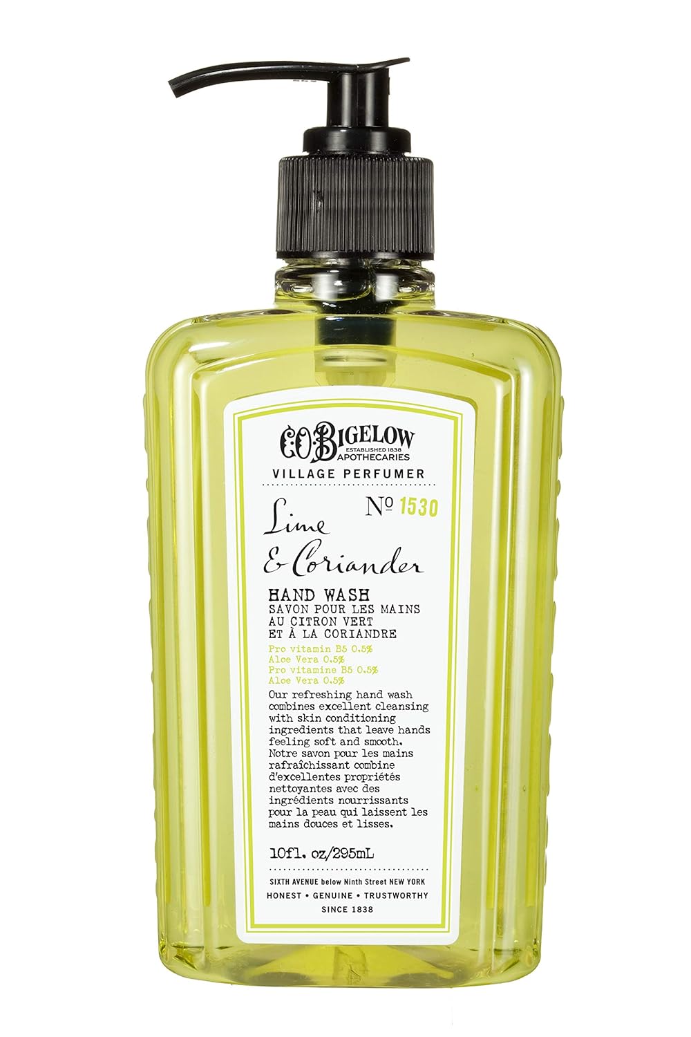 C.O. Bigelow Hand Wash Lime Coriander, Village Perfumer Moisturizing Soap Wash For Bathroom & Kitchen With Aloe Vera And Pro-Vitamin B5, 10 Fl Oz