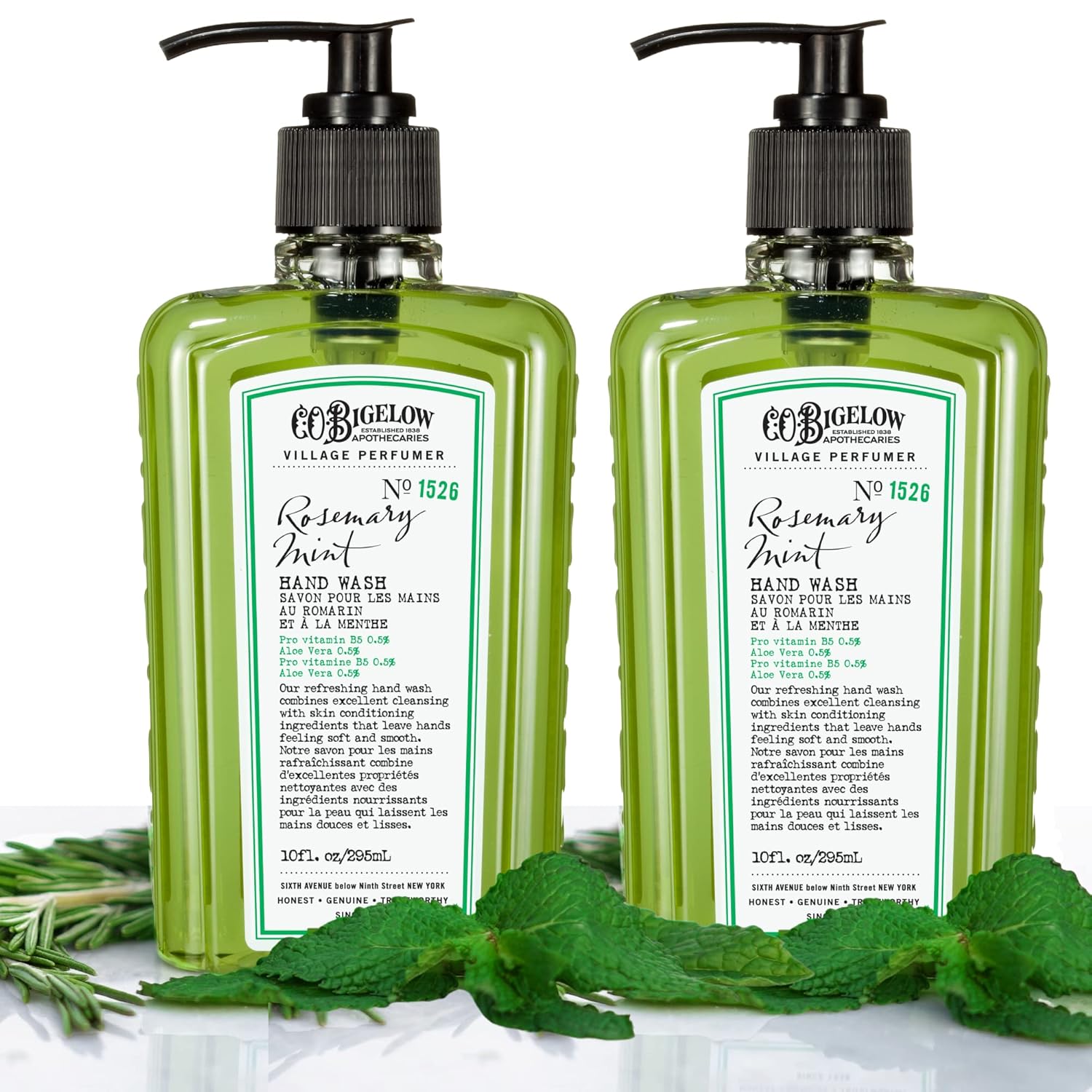 C.O. Bigelow Hand Wash Rosemary Mint, Village Perfumer Moisturizing Hand Soap For Bathroom & Kitchen With Aloe Vera And Pro-Vitamin B5, 10 Fl Oz