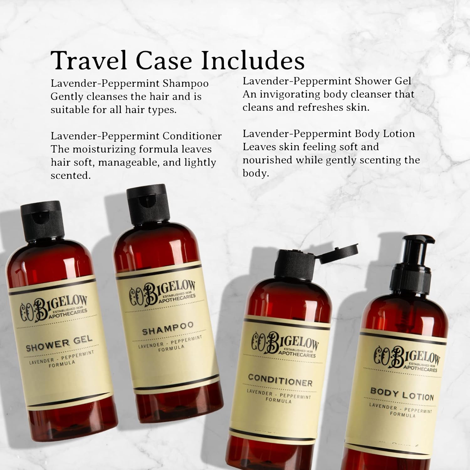 C.O. Bigelow Lavender Peppermint Travel Kit, 4 Items (3.4 Oz Each) Plus Travel Case