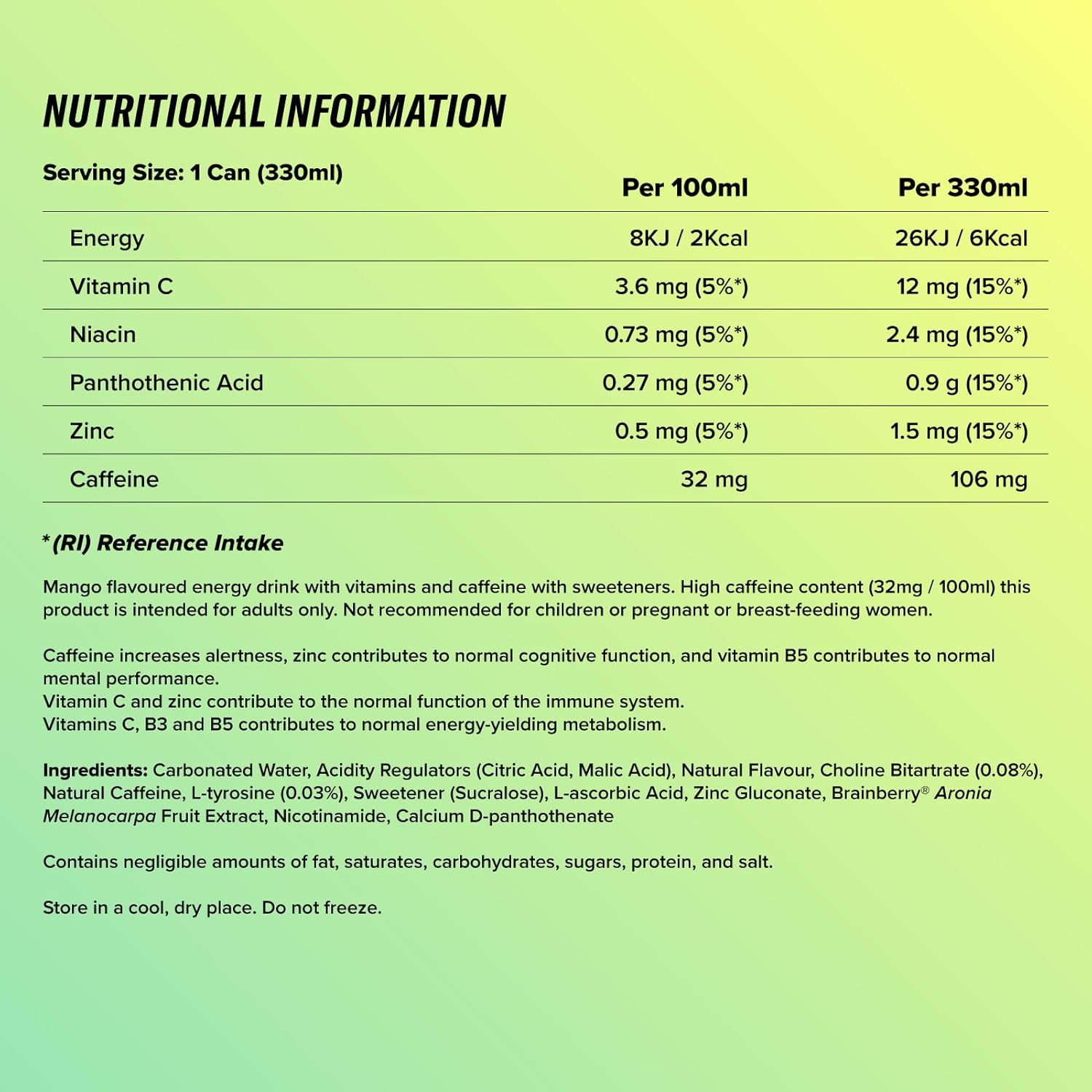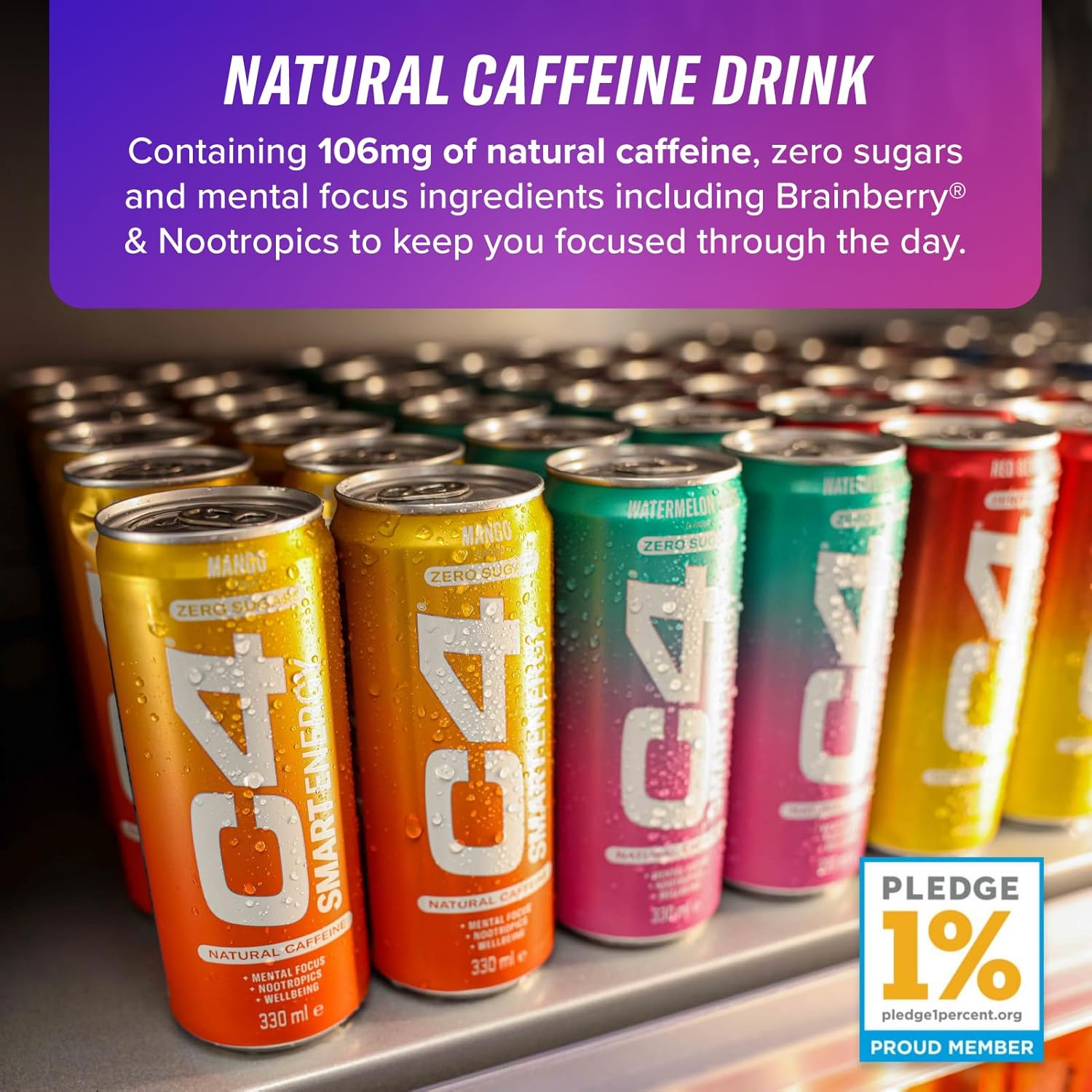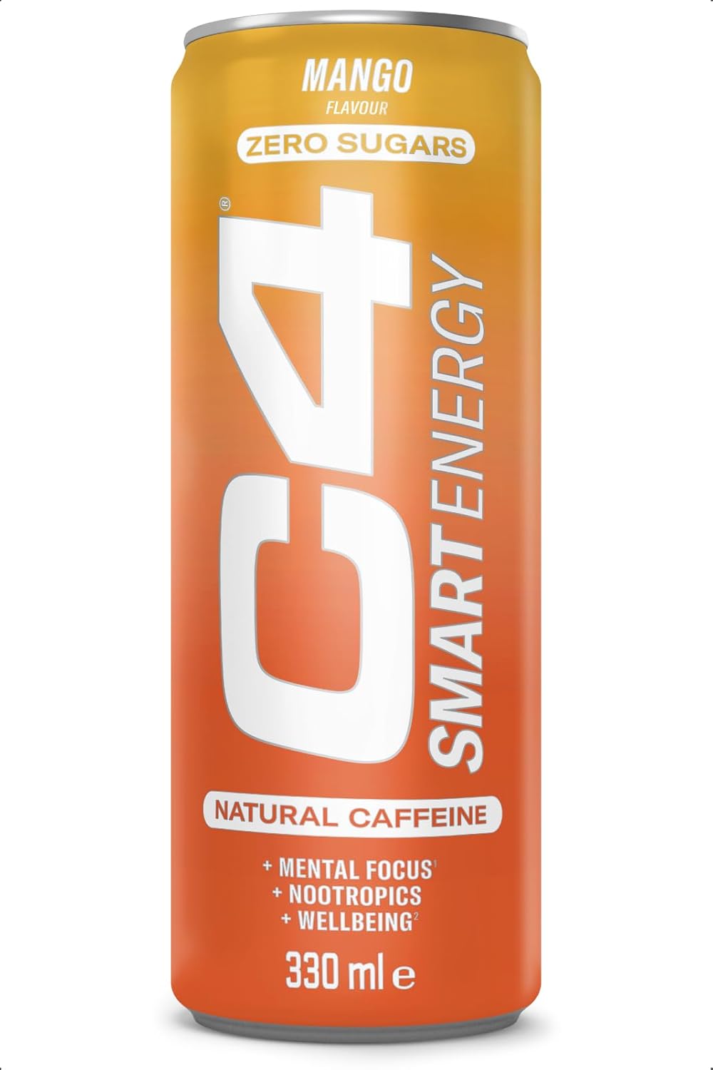 C4 Smart Energy Drinks Mango 330Ml (12 Pack) | Sugar Free Energy Drink With 106Mg Natural Caffeine, Brainberry, Nootropics, Vitamin C | Natural Energy Drink For Mental Focus On The Go