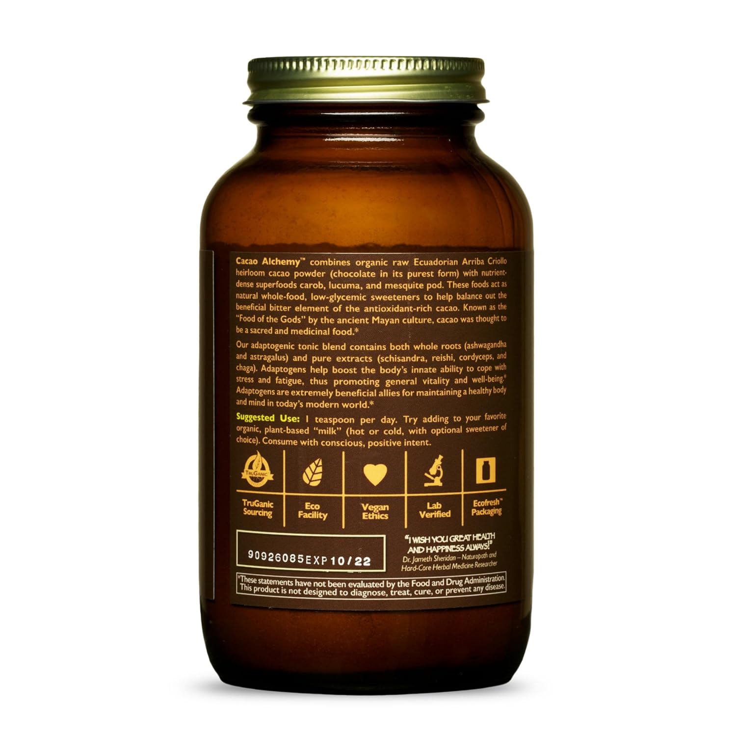 Certified organic cacao with adaptogen blend featuring whole roots and pure extracts