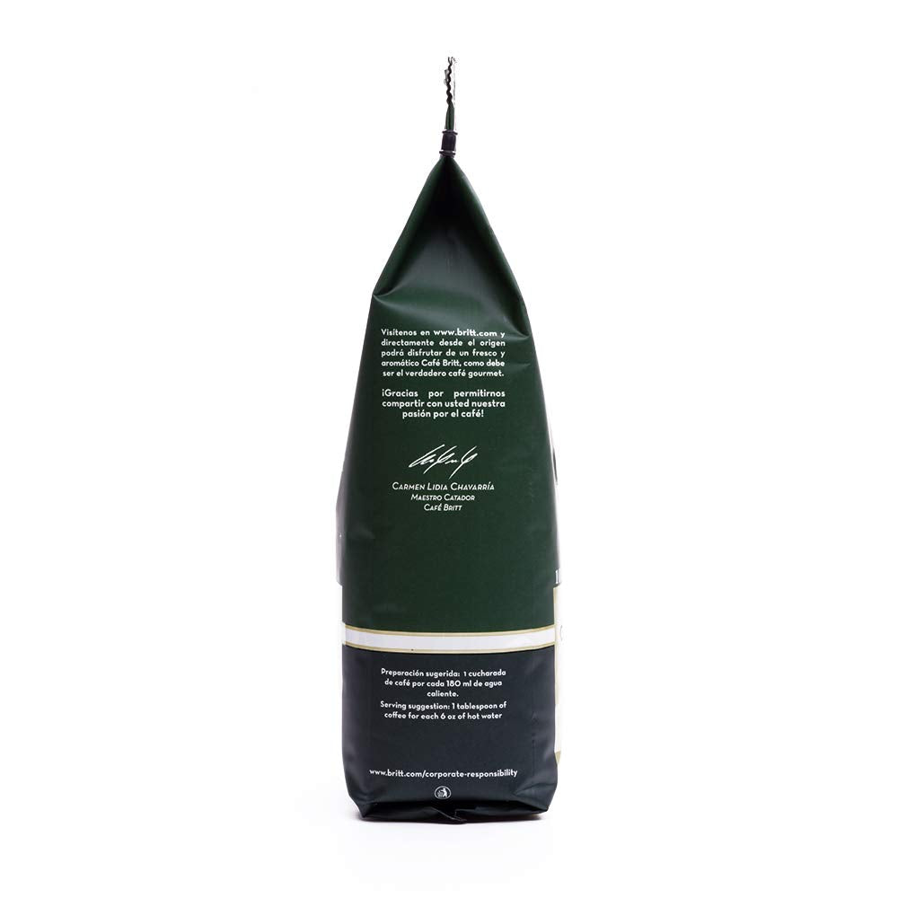 Café Britt® - Costa Rican Dark Roast Coffee (12 Oz.) - Whole Bean, Arabica Coffee, Kosher, Gluten Free, 100% Gourmet & Dark Roast (1 Year Shelf-Life)