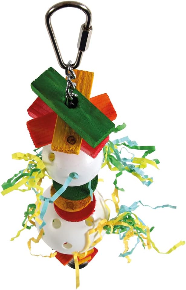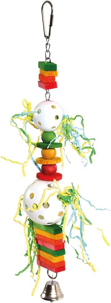 Foraging Fun: Hide treats inside the Wiffle Balls, watch as you Parrot enjoys shredding the paper and retrieving goodies. This toy keeps feet active and healthy and even has a bell for noisemaking fun