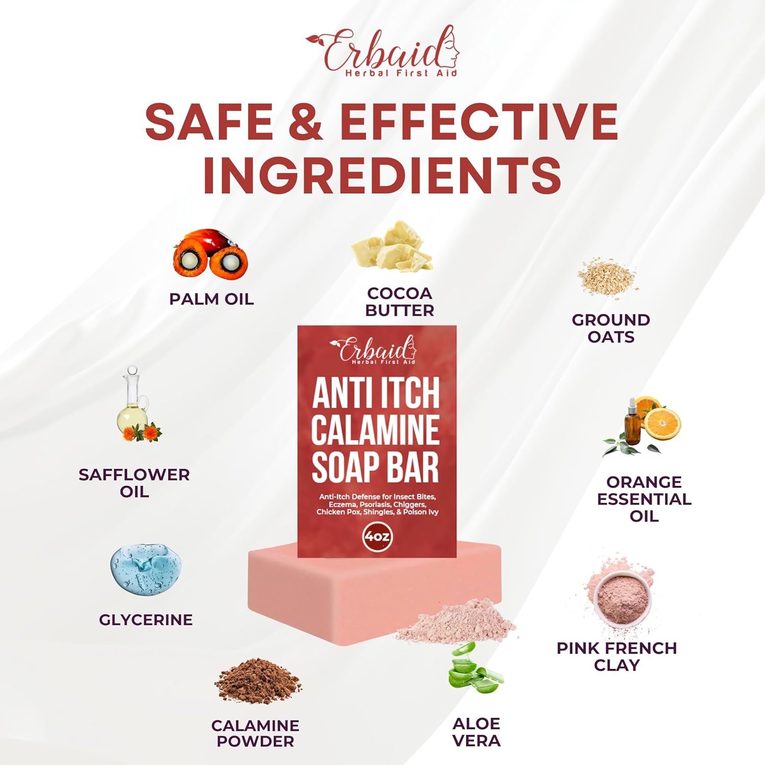Calamine Soap Bar For Itching – All Natural Instant Itch Relief – Calming Calamine Soap For Itchy Skin, Insect Bite, Eczema, Poison Ivy Rash, Chicken Pox – Pure Raw Anti-Itch Body Wash Made In Usa