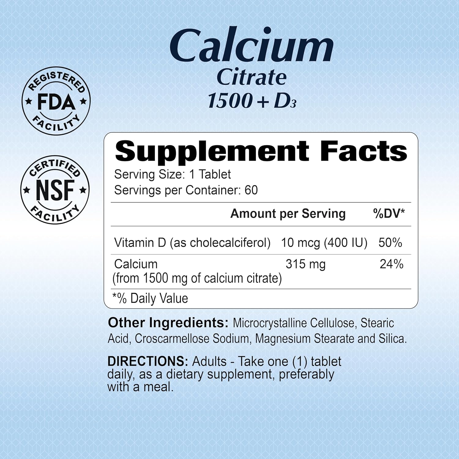 high-potency, Calcium, Vitamin D, alfa vitamins, tablets, bones, teeth, natural, health, strenght, wellness, 1000 IU, made in the usa, lifestyleCalcium 1500 mg with Vitamin D 1000 IU Tablets fro daily intake. 1500 mg Calcium and 1000 IU Vitamin D per serving Contributes to bone strength and well-being* A high-potency source of Calcium and Vitamin D Since your body can’t produce Calcium on its own, a balanced diet, regular exercise, healthy lifestyle choices and adequate intake of Calcium and Vitamin D can play a role in maintaining strong, healthy bones for years to come