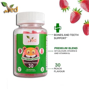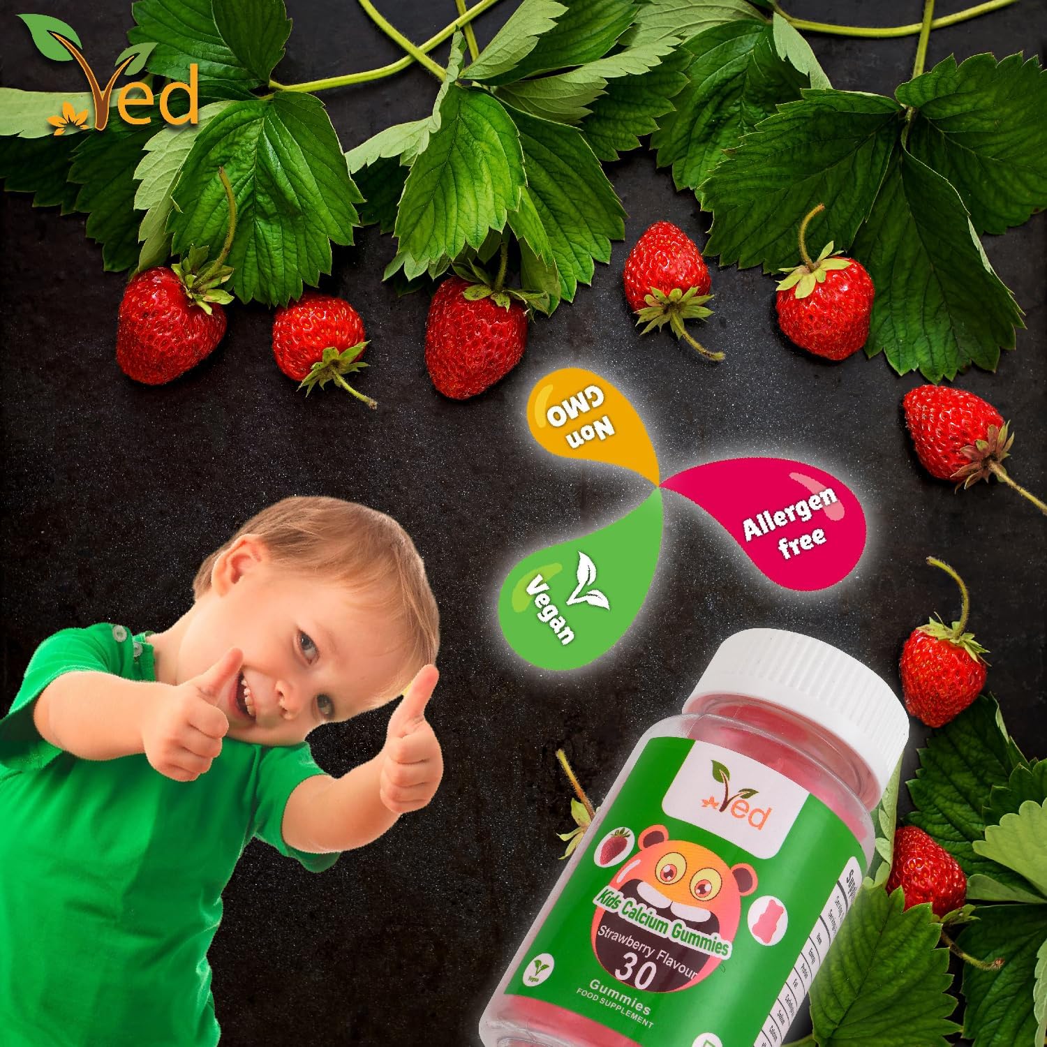 Calcium Gummies Kids,15 Day Supply, Natural Strawberry Flavour, 30 Chewable Vegan Gummies, Vegetarian Friendly, Energy & Immune System, Kids Calcium Gummies, Gmo & Gluten Free