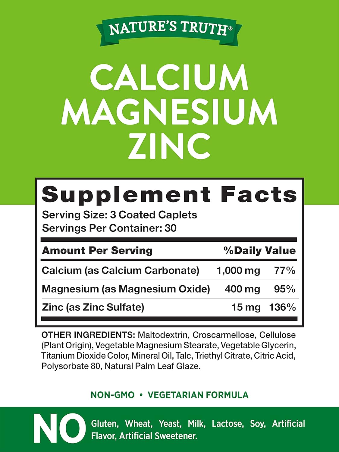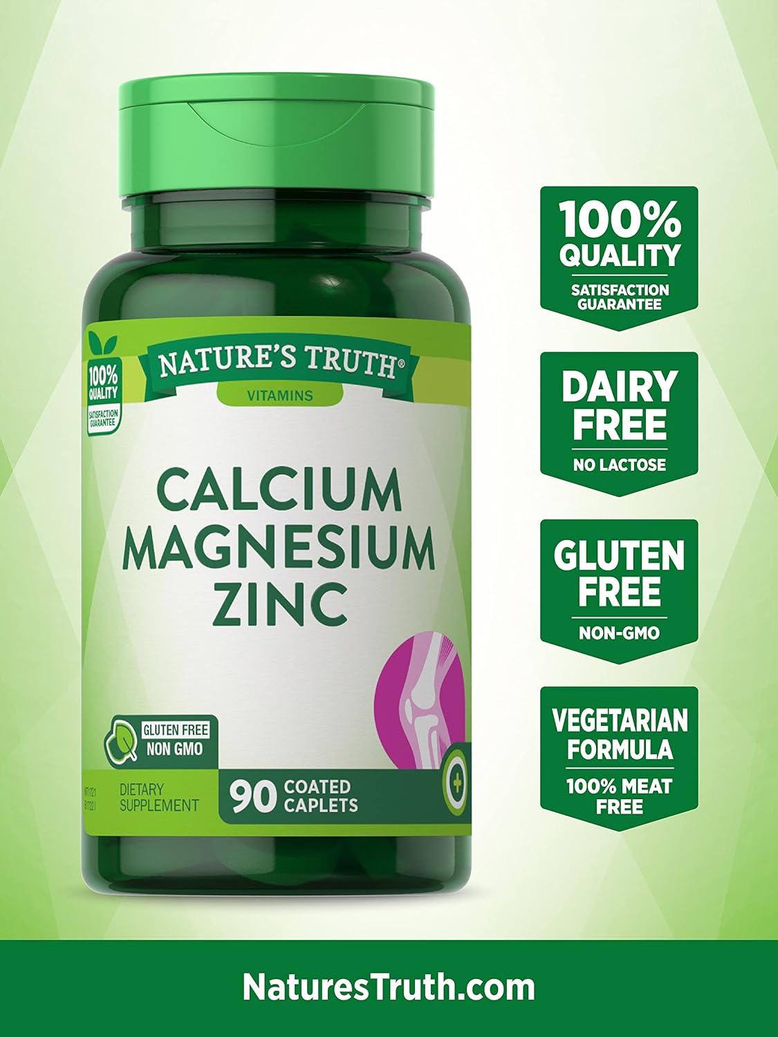 Calcium Magnesium Zinc Supplement | 90 Caplets | Non-Gmo And Gluten Free | By Nature'S Truth