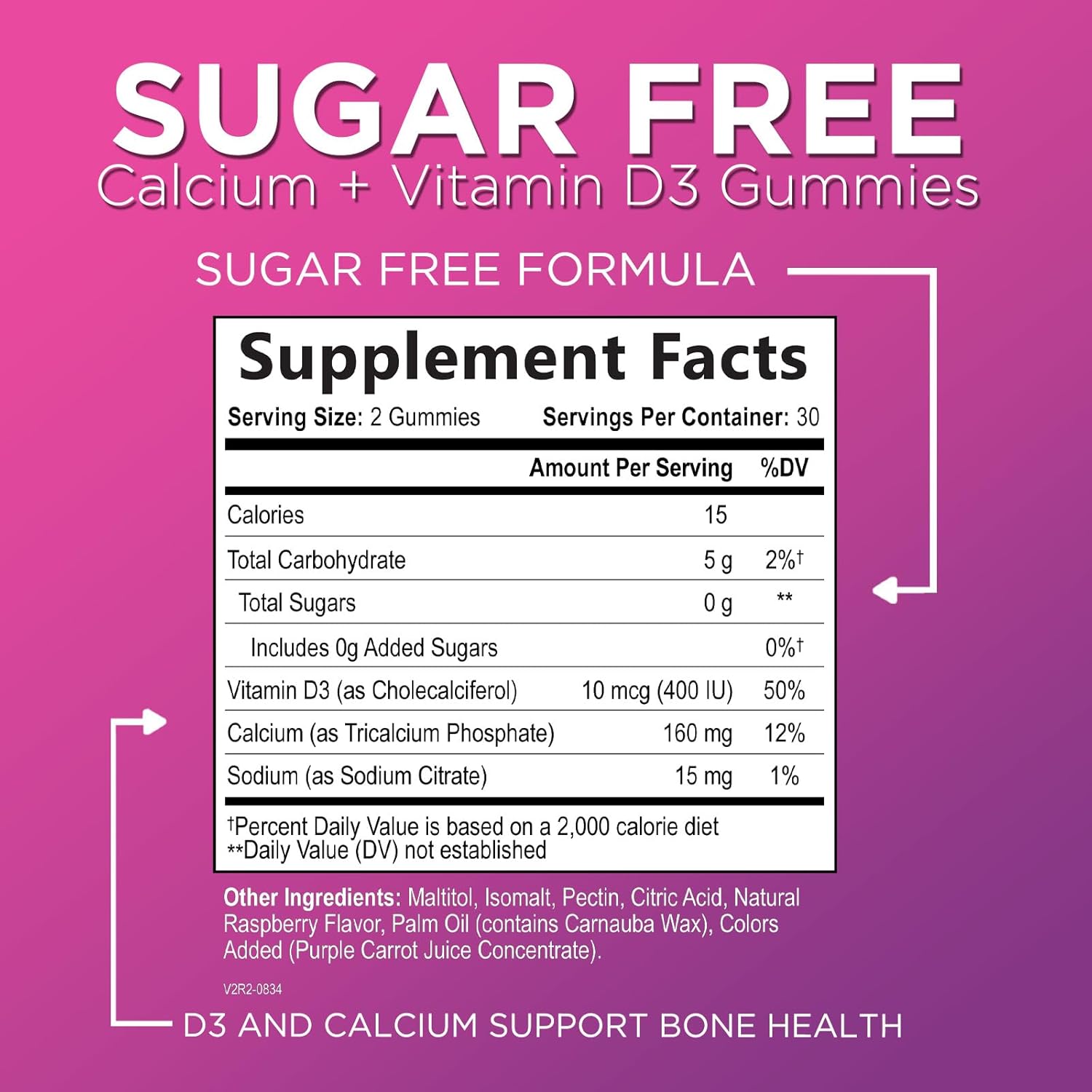 Calcium Supplements For Women + 400 Iu Vitamin D3 - Sugar-Free Calcium Chews Gummy For Bone & Immune Support, Supports Teeth & Bone Strength, Chewable Calcium Supplement For Women & Men - 60 Gummies