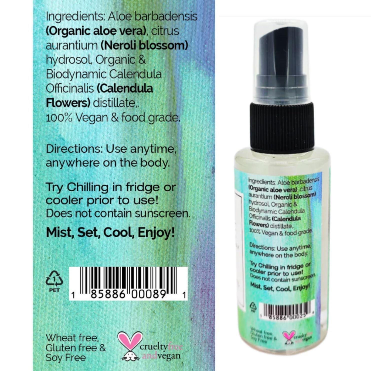 About this item Instant Hydration & Refreshment Delivers a cooling burst of moisture to dry, tired, or irritated skin—perfect for daily use or whenever your skin needs a boost. Soothes Sensitive Skin Naturally Formulated with organic aloe vera and calendula to calm redness, inflammation, and environmental stress. Preps Skin for Serums & Moisturizers Use after cleansing to help your skin better absorb treatments and lock in hydration for a smooth, dewy finish. Clean Beauty You Can Trust Made with organic, non-GMO ingredients. Free from parabens, sulfates, synthetic fragrance, and harsh chemicals. Travel-Friendly 2 oz Spray Bottle Lightweight and compact—perfect for your purse, gym bag, or travel kit. A skincare essential for on-the-go hydration. › See more product details,Instant Hydration & Refreshment Delivers a cooling burst of moisture to dry, tired, or irritated skin—perfect for daily use or whenever your skin needs a boost,Soothes Sensitive Skin Naturally Formulated with organic aloe vera and calendula to calm redness, inflammation, and environmental stress,Preps Skin for Serums & Moisturizers Use after cleansing to help your skin better absorb treatments and lock in hydration for a smooth, dewy finish,Clean Beauty You Can Trust Made with organic, non-GMO ingredients. Free from parabens, sulfates, synthetic fragrance, and harsh chemicals,Travel-Friendly 2 oz Spray Bottle Lightweight and compact—perfect for your purse, gym bag, or travel kit. A skincare essential for on-the-go hydration