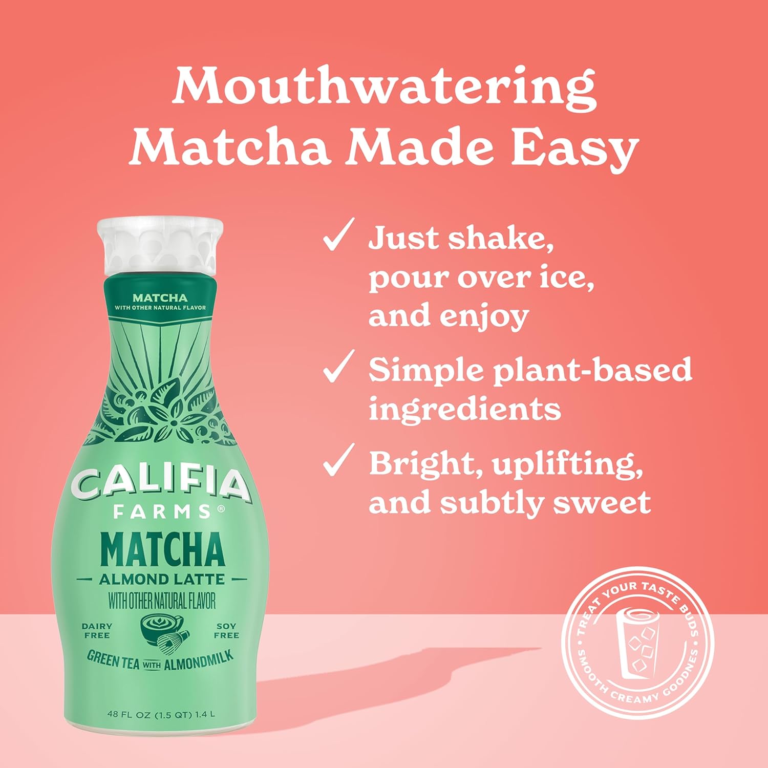 Califia Farms - Matcha Almond Latte, 48 Oz, Dairy Free, Almond Milk, Plant Based, Vegan, Gluten Free, Non Gmo, Green Tea