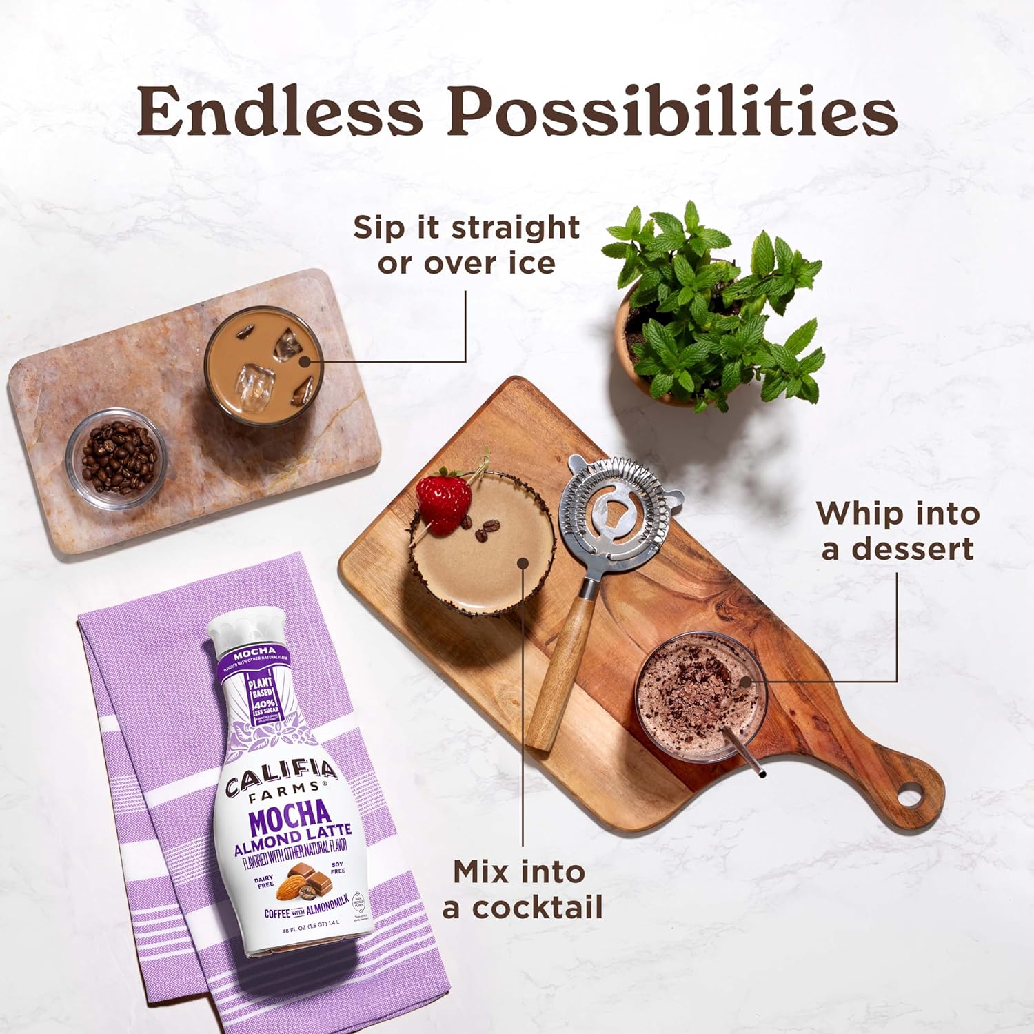 Califia Farms - Mocha Cold Brew Coffee With Almond Milk, 48 Oz, 100% Arabica, Dairy Free, Plant Based, Vegan, Gluten Free, Non Gmo, Iced Coffee