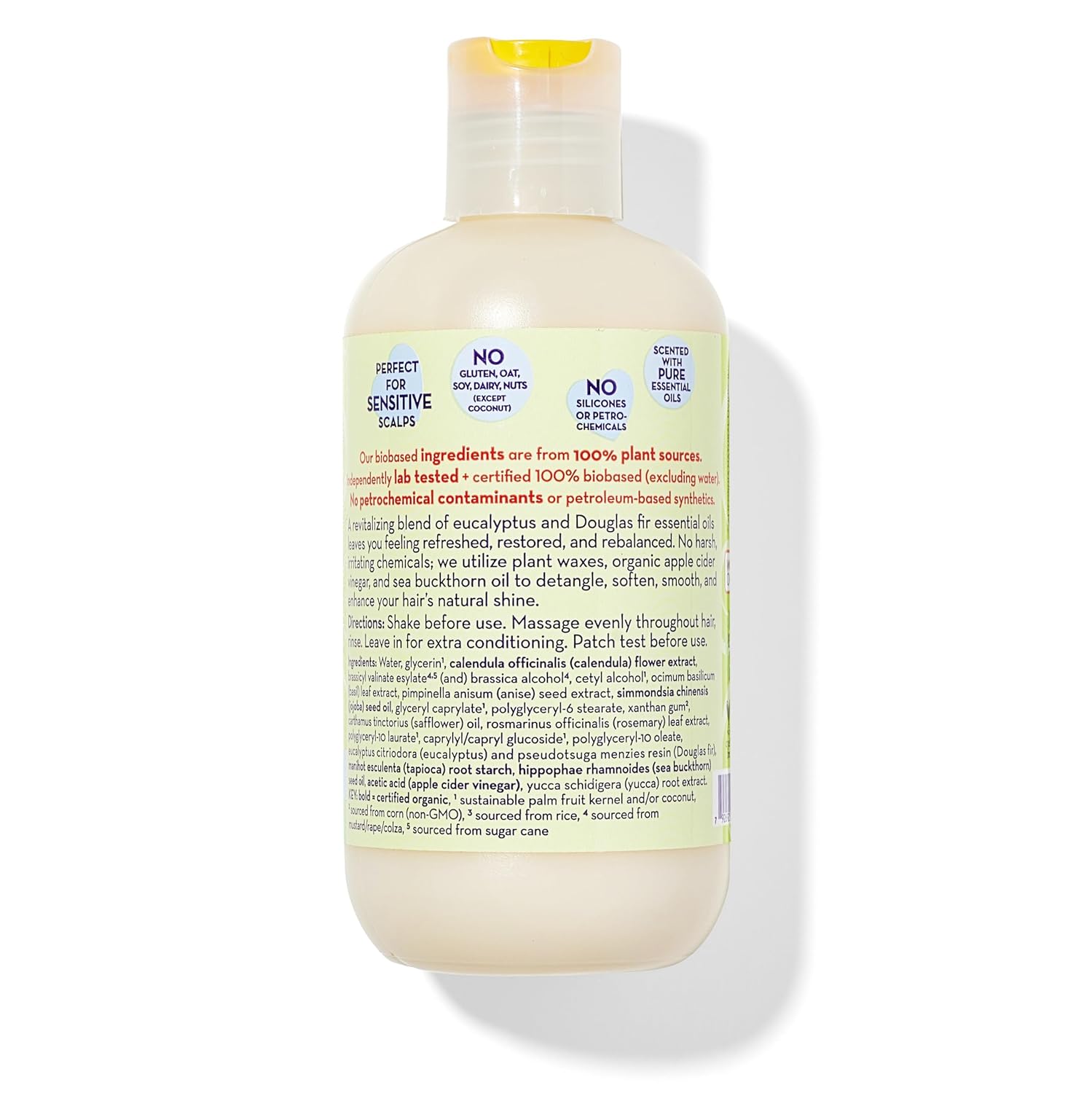 About this item 100% PLANT-BASED CONDITIONER: This vegan baby conditioner is USDA Certified 100% Bio-Based, meaning all ingredients are 100% plant-based. Our sulfate free conditioner is free of harsh, irritating chemicals, and petroleum ingredients. SOFTENS & DETANGLES HAIR: This moisturizing conditioner adds shine, softness, and detangles hair with the power of organic apple cider vinegar, calendula, and plant-based waxes. This curly hair conditioner is also great for detangling thick hair! RINSE-OUT OR LEAVE IN HAIR CONDITIONER FORMULA: Our hydrating conditioner can be rinsed out or you can leave in conditioner for dry damaged hair. This leave in conditioner for curly hair helps nourish, moisturize and detangle fussy hair. REFRESHING EUCALYPTUS SCENT: No synthetic fragrances โ our toddler conditioner is lightly scented with a refreshing, vibrant blend of Eucalyptus and Douglas Fir essential oils. Enjoy the invigorating scent of this luxurious kids hair conditioner. FREE OF COMMON ALLERGENS: California Baby hair products, including this leave in hair conditioner, are allergy tested + free of common allergens like gluten, soy, sesame, oat, dairy, peanuts, and tree nuts (except coconut). Plus, this hypoallergenic conditioner has no risk of cross-contamination. โบ See more product details,100% PLANT-BASED CONDITIONER: This vegan baby conditioner is USDA Certified 100% Bio-Based, meaning all ingredients are 100% plant-based. Our sulfate free conditioner is free of harsh, irritating chemicals, and petroleum ingredients,SOFTENS & DETANGLES HAIR: This moisturizing conditioner adds shine, softness, and detangles hair with the power of organic apple cider vinegar, calendula, and plant-based waxes. This curly hair conditioner is also great for detangling thick hair!,RINSE-OUT OR LEAVE IN HAIR CONDITIONER FORMULA: Our hydrating conditioner can be rinsed out or you can leave in conditioner for dry damaged hair. This leave in conditioner for curly hair helps nourish, moisturize and detangle fussy hair,REFRESHING EUCALYPTUS SCENT: No synthetic fragrances โ our toddler conditioner is lightly scented with a refreshing, vibrant blend of Eucalyptus and Douglas Fir essential oils. Enjoy the invigorating scent of this luxurious kids hair conditioner,FREE OF COMMON ALLERGENS: California Baby hair products, including this leave in hair conditioner, are allergy tested + free of common allergens like gluten, soy, sesame, oat, dairy, peanuts, and tree nuts (except coconut). Plus, this hypoallergenic conditioner has no risk of cross-contamination